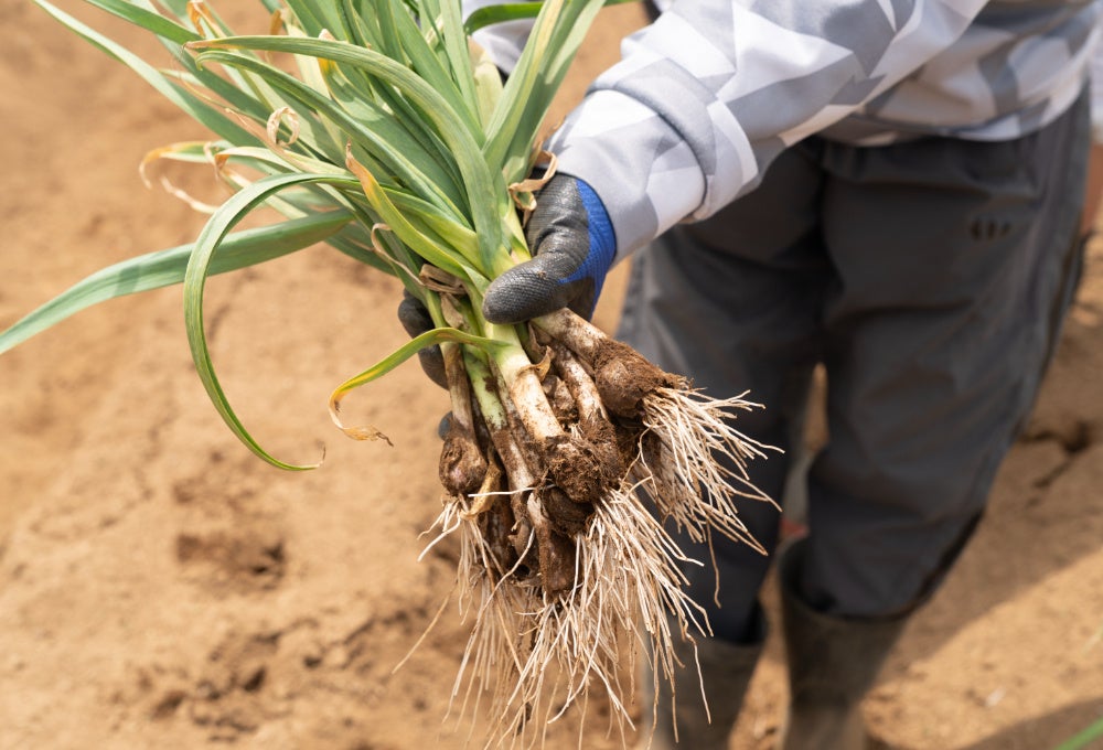 日本で広く食べられているホワイト六片種のにんにくはふわっと香る良い香りと、真っ白で大きな1片が特徴。無農薬栽培が難しいとされているにんにくを「すまいるアグリ」では、手作業で行う細かな除草作業や水やりをすることで栽培を可能にしています。火を通した時に感じられるにんにく特有の食欲をそそる香りや味はそのまま、安心安全に食べていただけるにんにくです。
