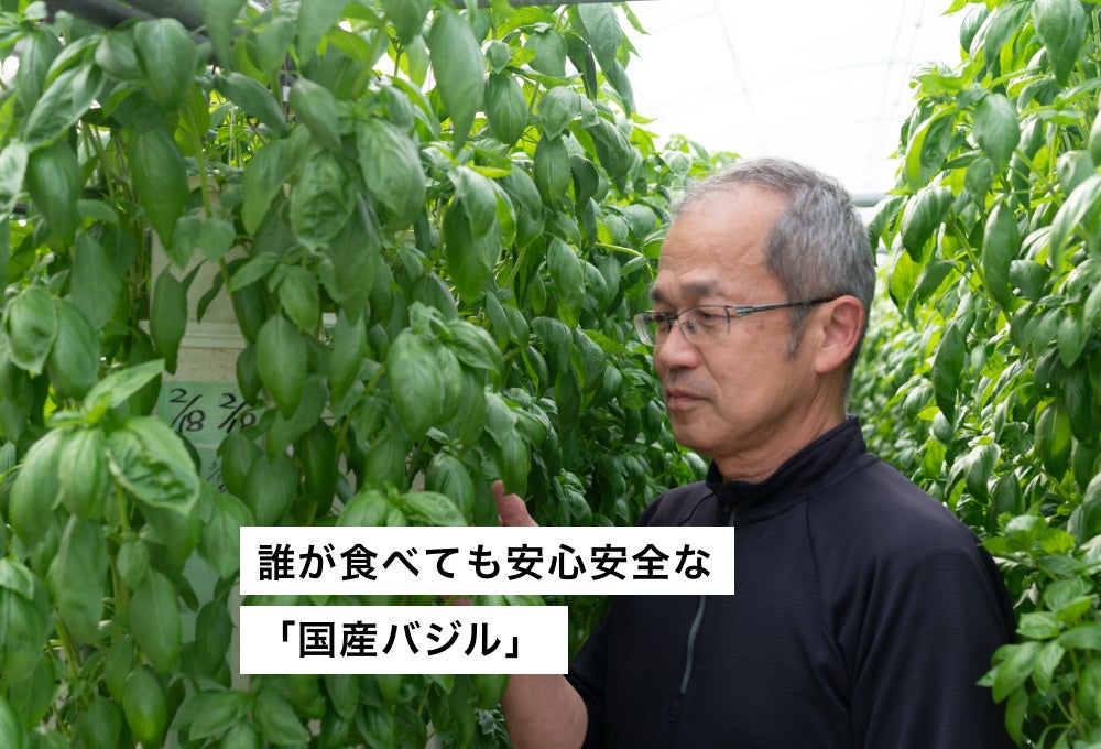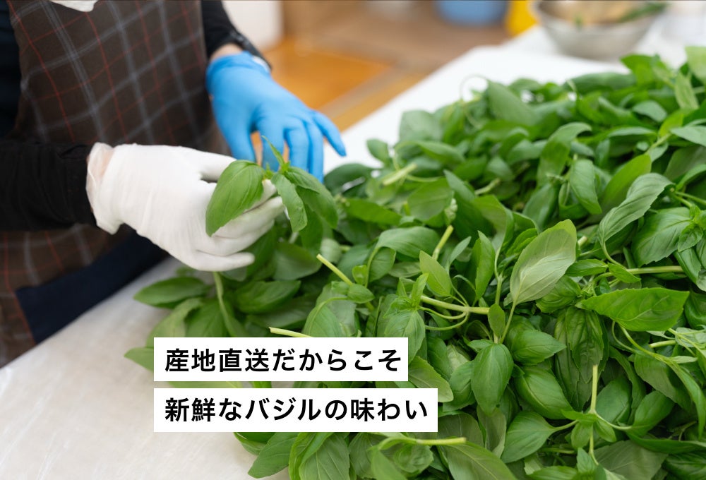 「目で見て、匂いを嗅ぐと、思わずにっこりと微笑んでしまうようなスイートバジル」を目指して、フレッシュな味わいを感じていただけるよう鮮度にこだわり、安心安全なバジルをお届けしています。
