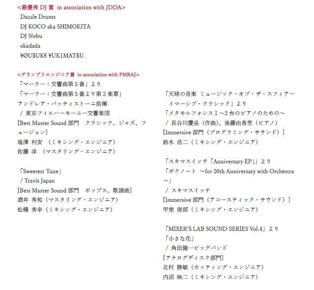※「グランプリエンジニア賞 in association with PMRAJ」はノミネート作品としてカウント