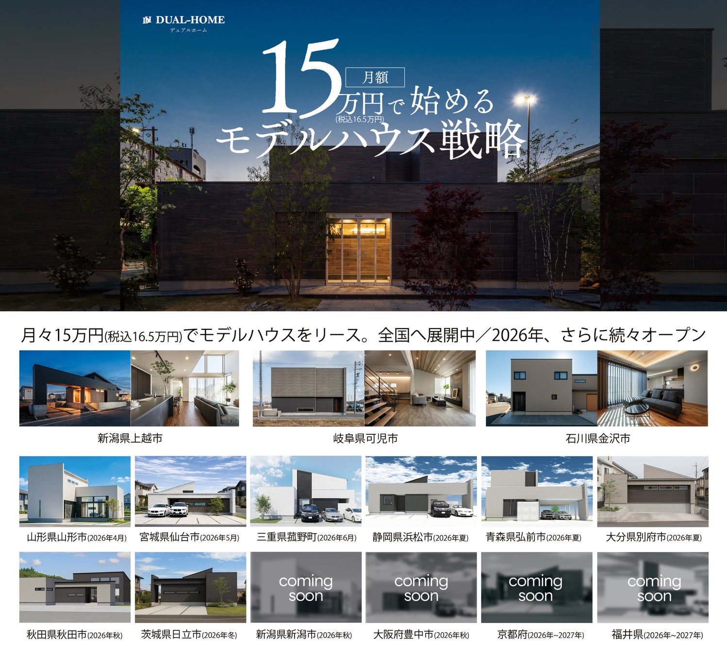 本年は全国で5棟以上のモデルハウスオープンを計画しており、DUALHOMEのクオリティを実際に体感いただける拠点を大幅に拡充します。数値に裏打ちされた性能と、空間設計の妙を直接お確かめいただける機会を全国各地で創出いたします。