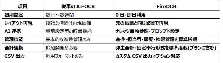 初期設定0日、作業時間平均87%削減を実現する次世代AI-OCR「FireOCR」を正式リリース ~テンプレート不要、レイアウト再現&プロンプト設定で帳票処理業務を革新~