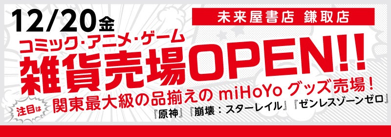イオングループの株式会社未来屋書店(本社:千葉県千葉市美浜区、代表取締役社長:平川雅隆 以下、未来屋書店)は、2024年12月20日(金) 千葉県千葉市イオン鎌取SC内、未来屋書店鎌取店内に約1500種類がそろうコミック・アニメ・ゲーム雑貨売場をオープンすることをお知らせいたします。
