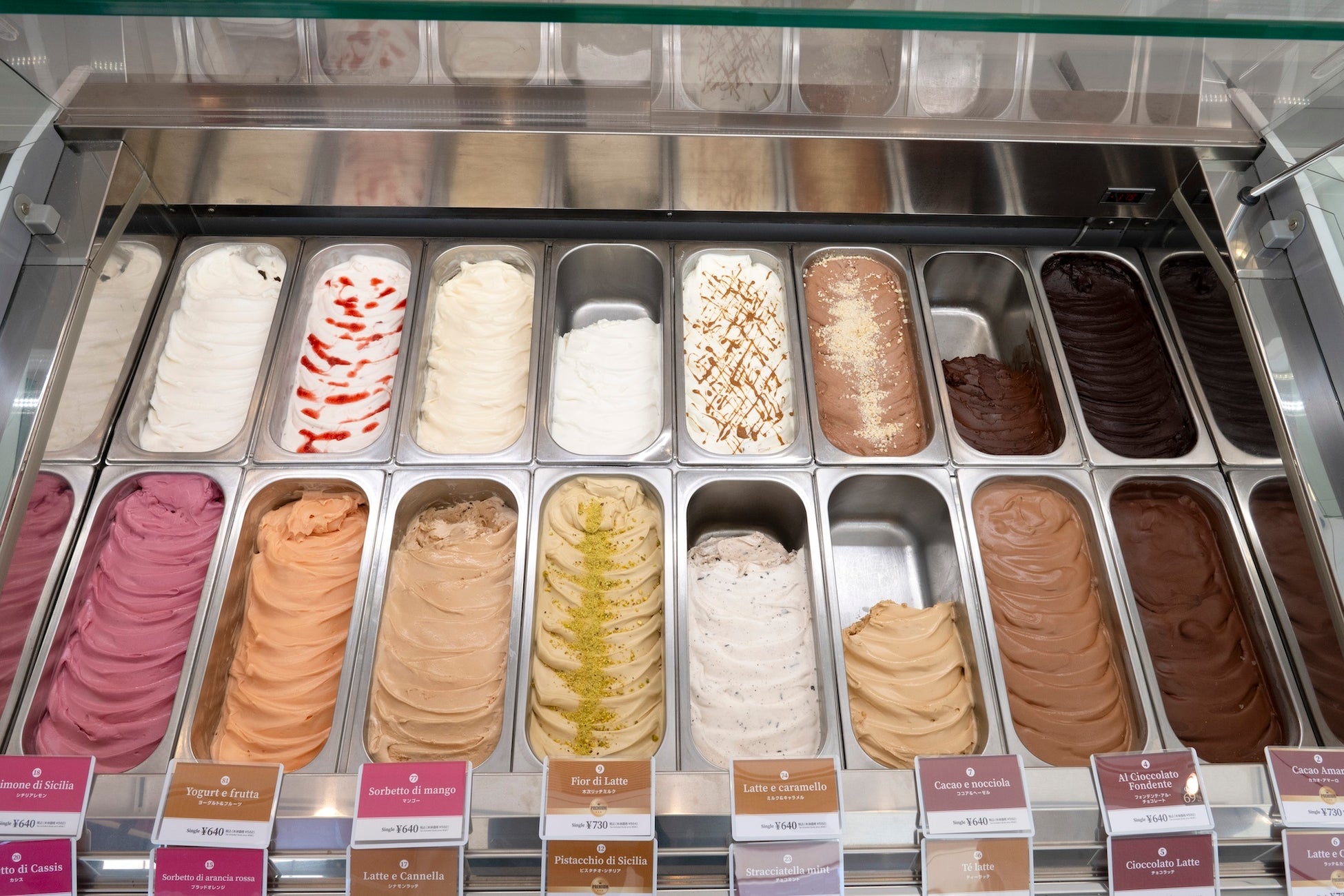 イタリアンジェラートの人気定番「ピスタチオ」はシチリア産、「ヘーゼルナッツ」にはピエモンテ産とともに最高品質のペーストをふんだんに使い、香ばしく濃厚な味わいのジェラートです。