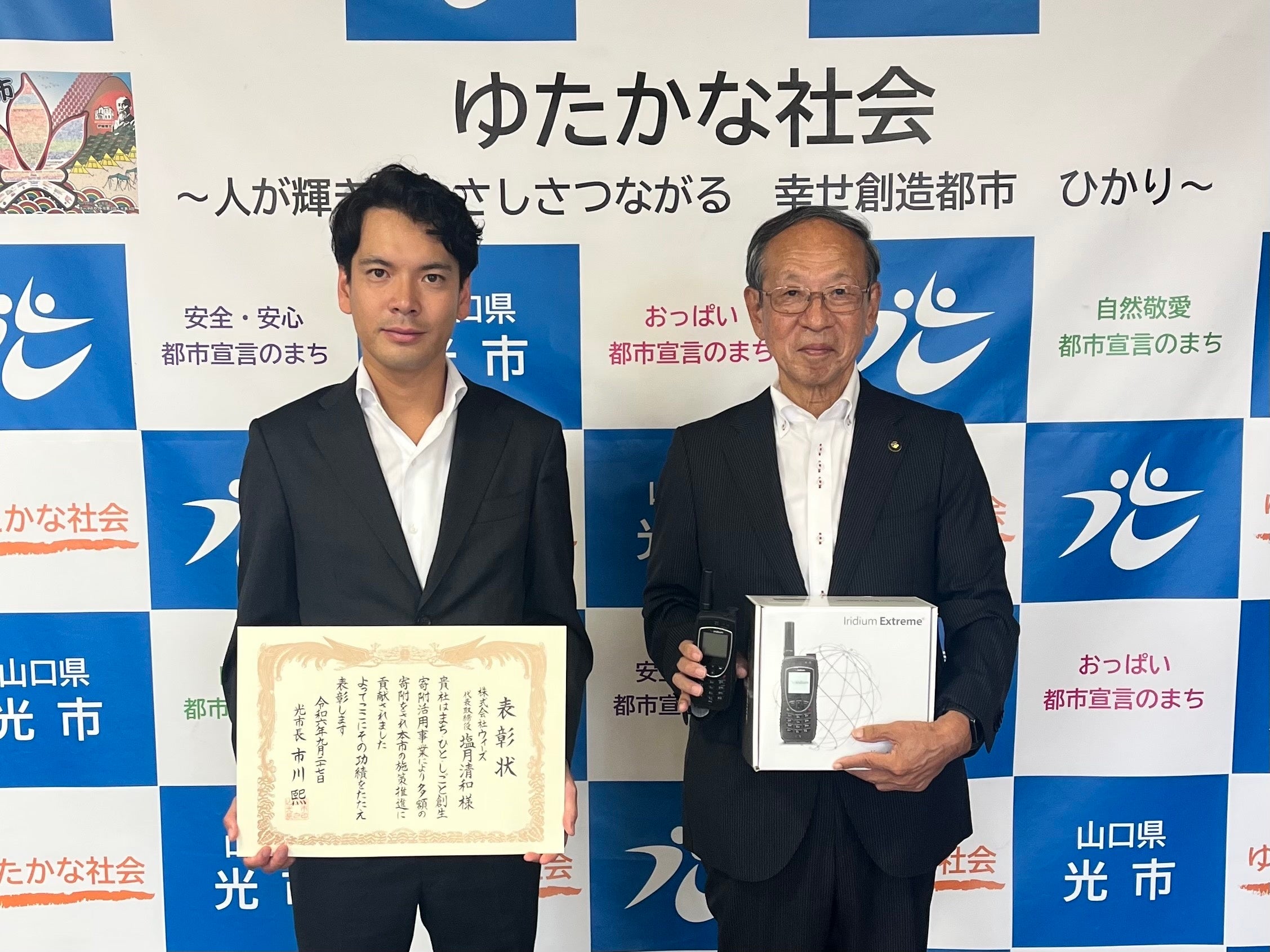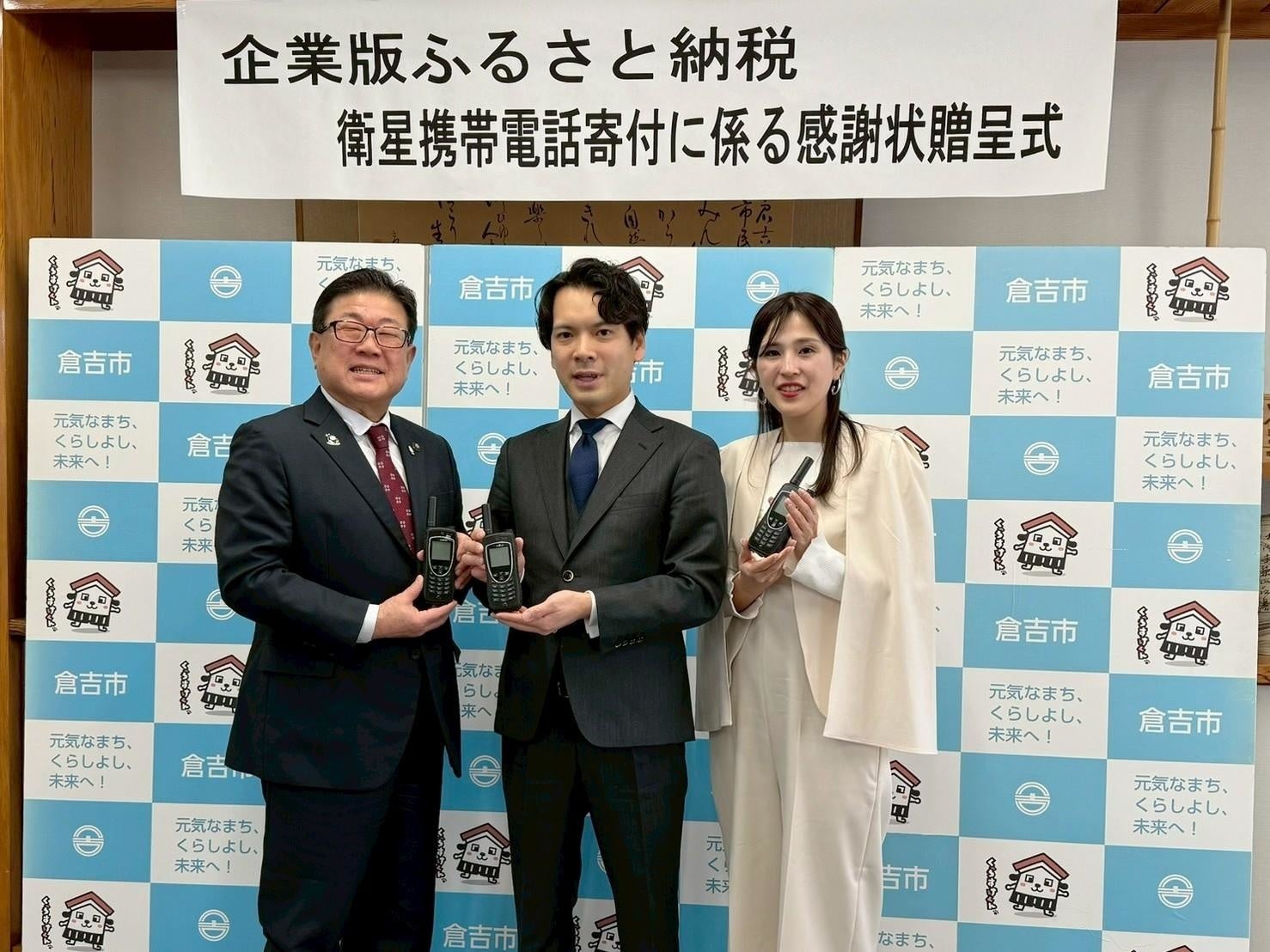 全国で調剤事業などを展開する「E―BONDホールディングス」グループ(代表取締役社長:塩月 清和)は、全国約100自治体に災害時や非常時に役立つ衛星携帯電話を寄付したことを発表しました。この取り組みは、地域の防災体制を強化し、緊急時の迅速な情報伝達を支援することを目的としています。このプロジェクトを推進した有限会社アクアテック(同グループ、代表取締役社長:大和田 健斗)は、全国の自治体を訪問して贈呈式を行い、中国では7自治体(島根県益田市、鳥取県湯梨浜町、倉吉市、山口県光市、岡山県井原市、笠岡市、赤磐市)に寄付を実施しました。