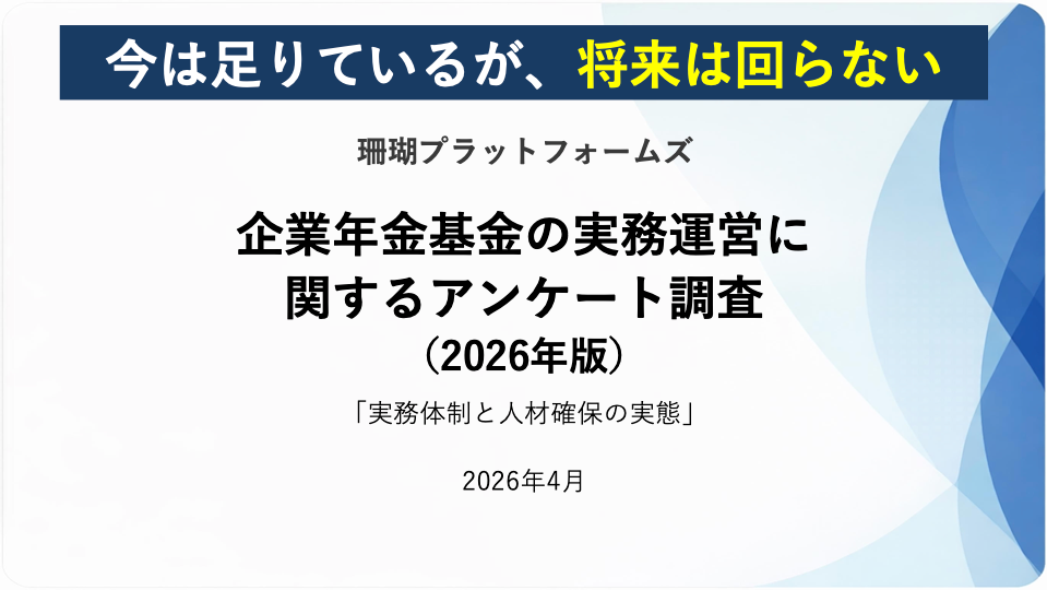 株式会社珊瑚プラットフォームズ(本社:東京都渋谷区、代表取締役:小熊 賢)は、全国の企業年金基金を対象に「企業年金基金の実務運営に関するアンケート調査(2026年版)」を実施しました。