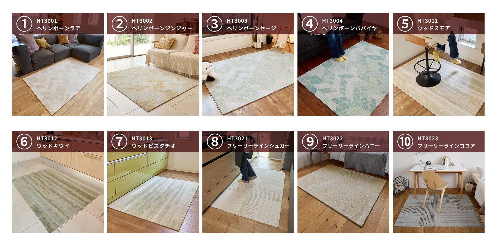 プレゼント対象商品「北欧柄ホームタイルカーペットHT3000」は、50cm角のタイルを自由に組み合わせることで、ヘリンボーンやウッド調などのデザインを楽しめる家庭向けタイルカーペットです。