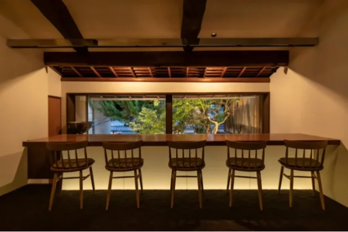 八坂神社のすぐ目の前、京都の伝統を感じさせる古民家の2階。和の風情が残る洗練された空間で、美しい庭園を見渡しながら、1000本以上のワインとともに、ゆったりとした気分で至福のひとときをお楽しみいただけます。