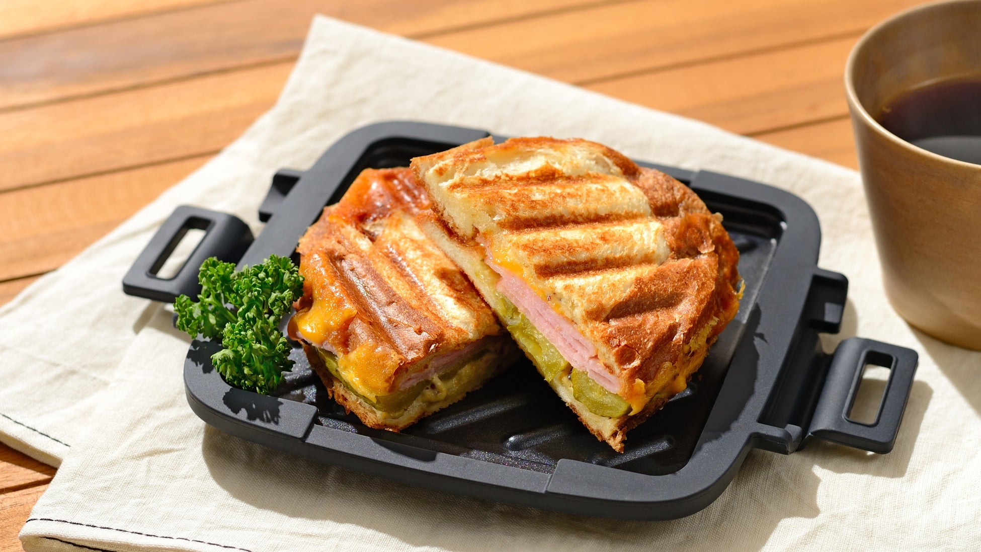 オーブントースターやフライパンは必要ありません。火を使わずホットサンド以外にも、おつまみやスイーツも作れます。一口コンロでもレンジと作業分担できます。