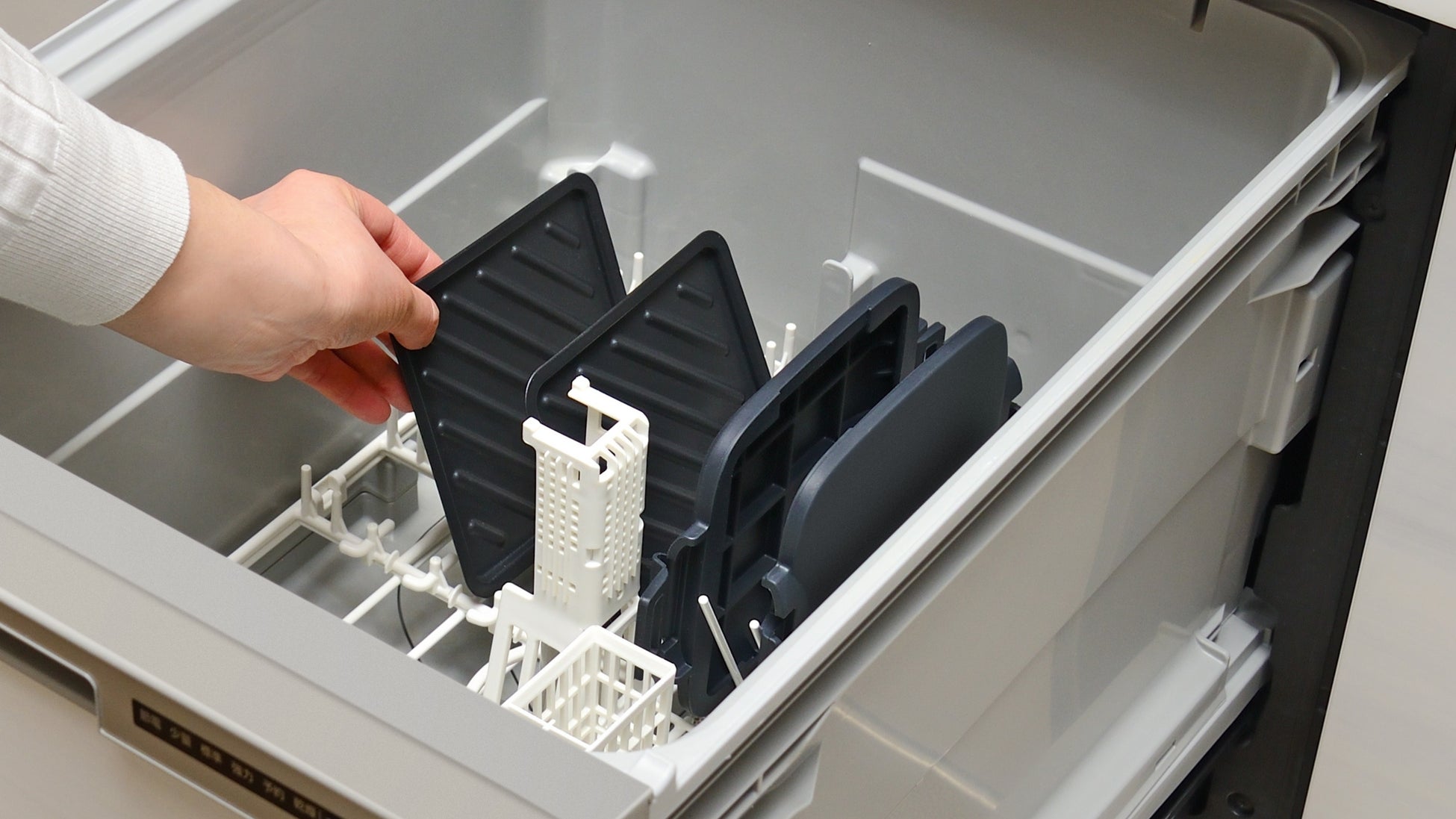 内面はふっ素樹脂加工でこびりつきにくく、お手入れしやすいです。内面プレートは外してスッキリ洗えます。本体は食洗機対応です。