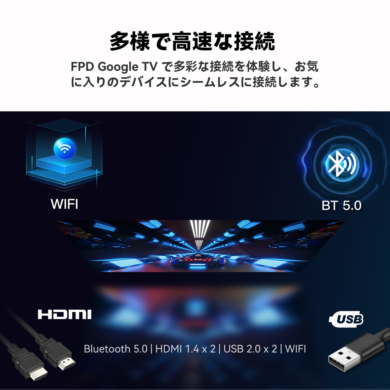 Chromecast内蔵、多様なHDMIおよびUSBポート搭載。スマートフォンや他のデバイスとの連携もスムーズです。