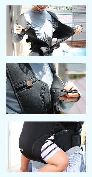 ・「フロントチャックで装着しやすく、二重ボタンで安心できる」