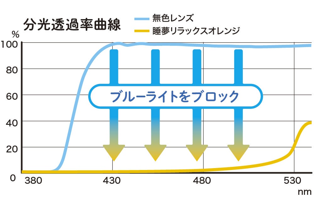 そこで、東海光学はブルーライトを効果的にブロックし、夜間のブルーライトをコントロールするスリープグラス「睡夢 -すいむ-」を発売いたしました。
