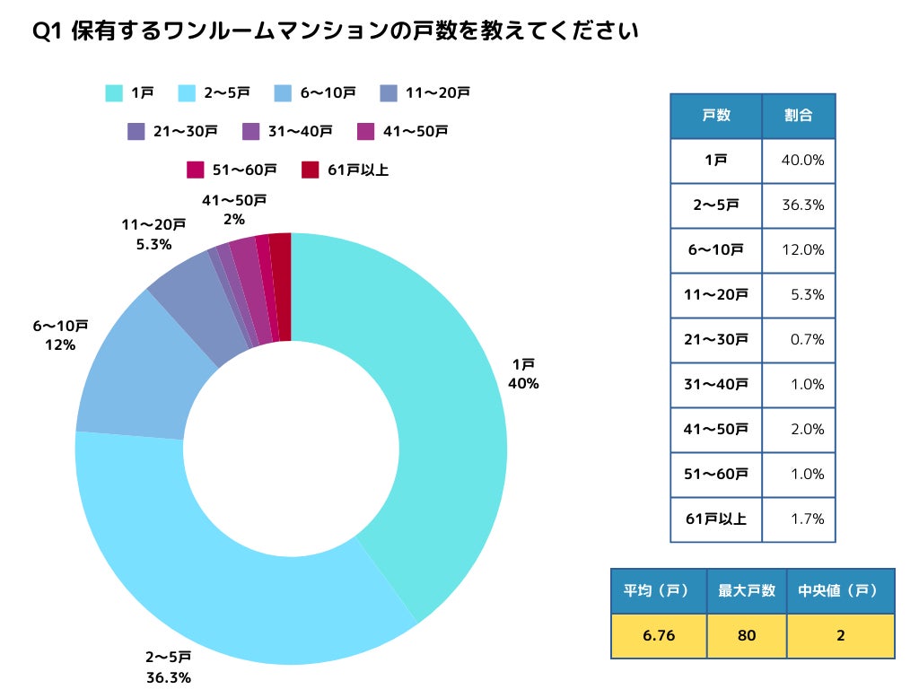 ・二極化が進むワンルーム投資市場: 1戸のみ保有が40%、平均6.76戸、最大80戸と格差