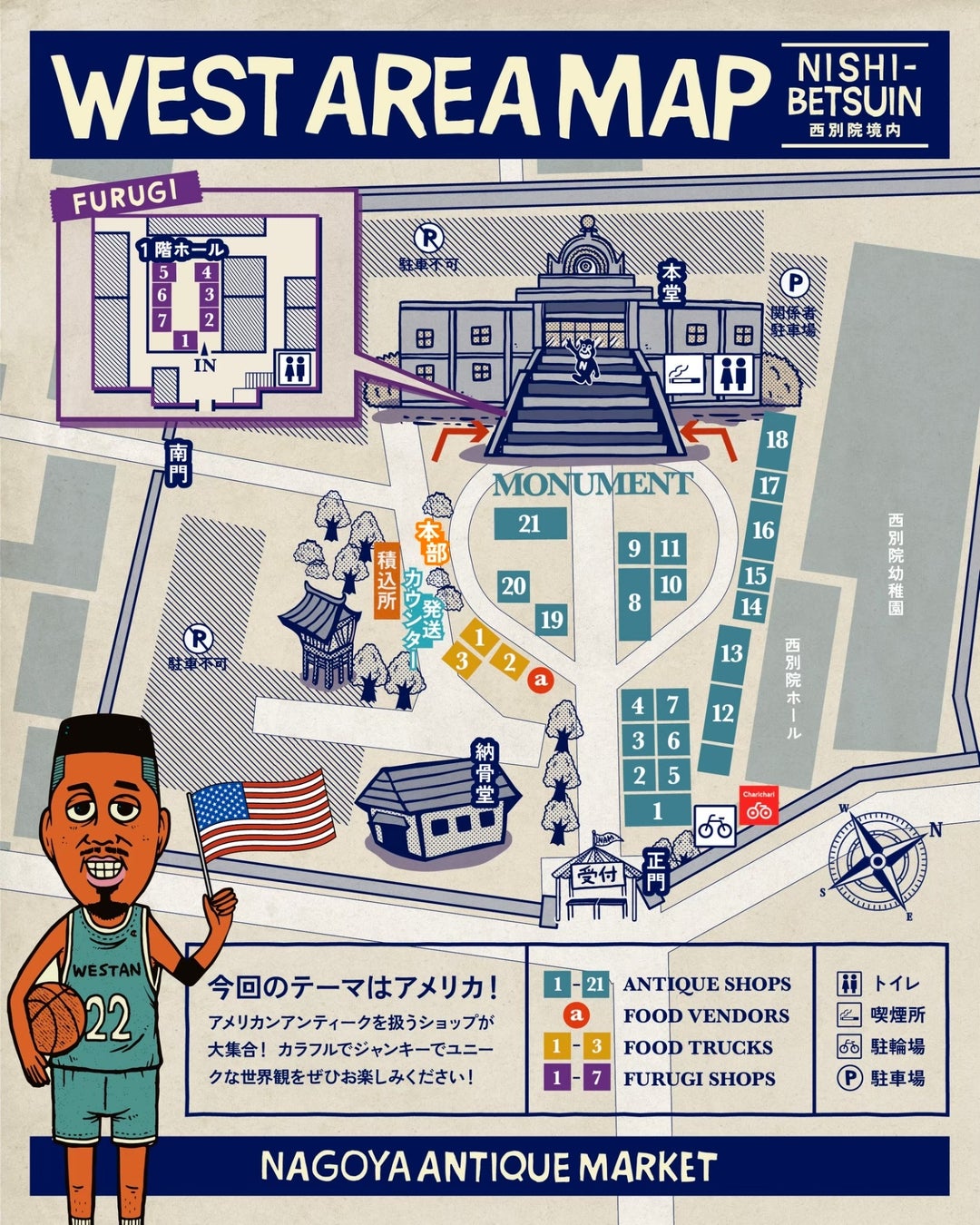 前回から新設された西別院「WEST AREA」は今回、アメリカアンティークだけのエリアに!アメリカンのアンティーク・雑貨・インテリアなどなど、アメリカンビンテージをこよなく愛する出店者が全国から大集合します!