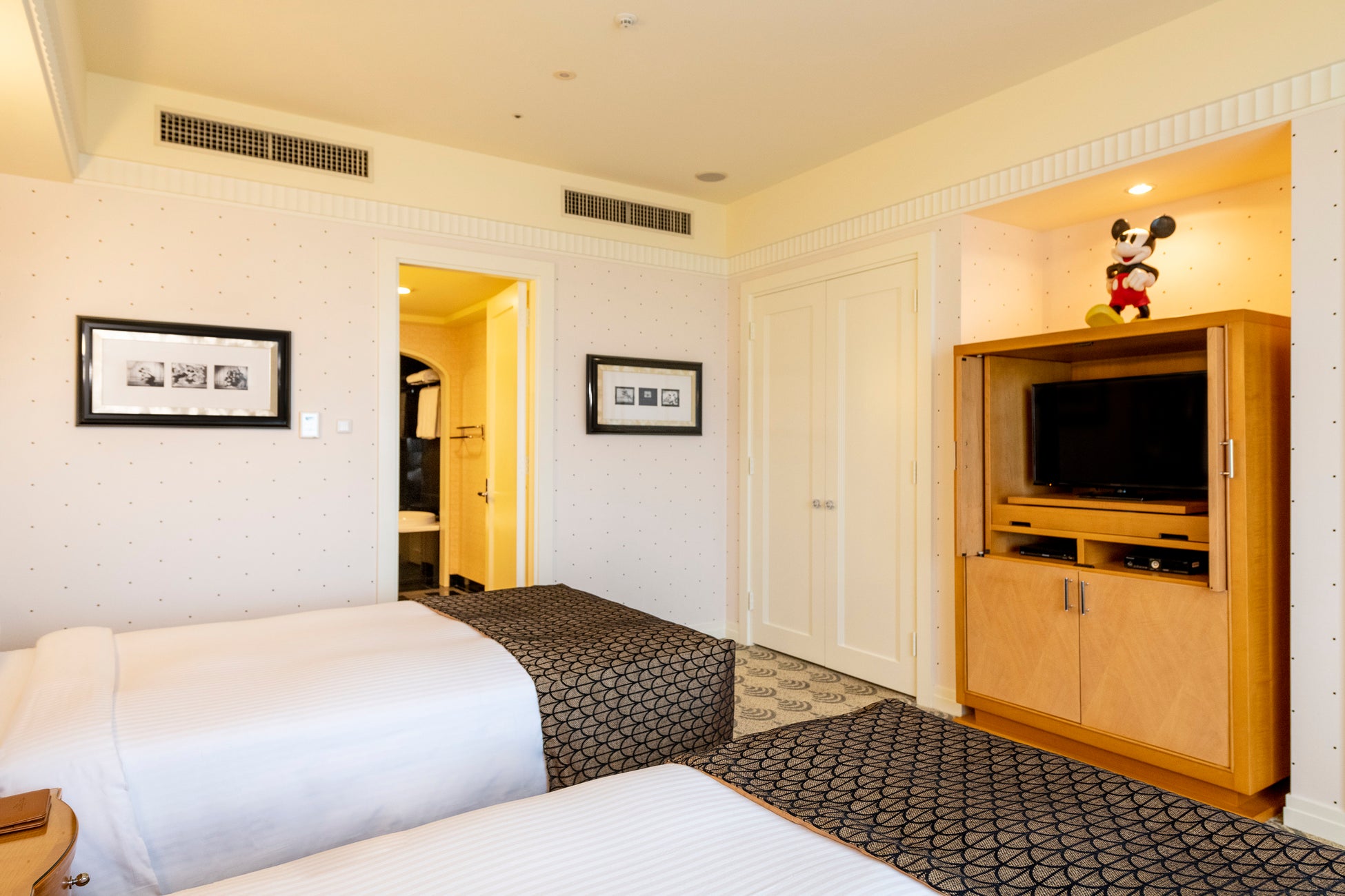 ミッキーマウスのモチーフがちりばめられた客室です。客室のあちらこちらに見え隠れするミッキーマウスのモチーフを探しながら滞在をお楽しみいただけます。