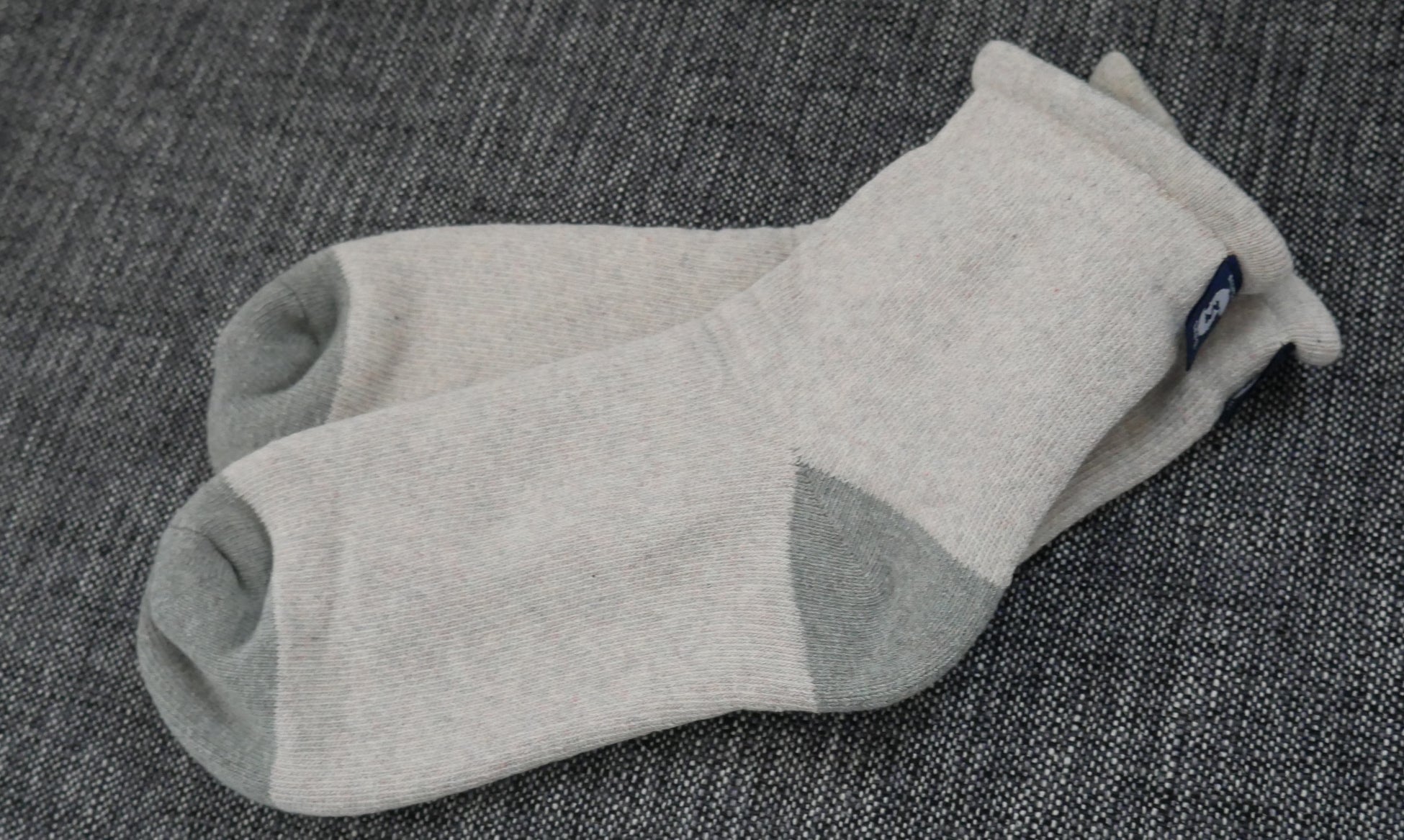 「ゆっくり編み立てたもちふわ靴下」は、その名のとおり、ゆっくりと時間をかけて丁寧に編み立てることで生まれる、柔らかく立体的な形状の靴下です。もちふわ靴下の最大の特徴である、しっかり弾力のある厚みとふわふわした軽やかさはそのままに、素材や色をSalmon-Safe仕様でつくりました。
