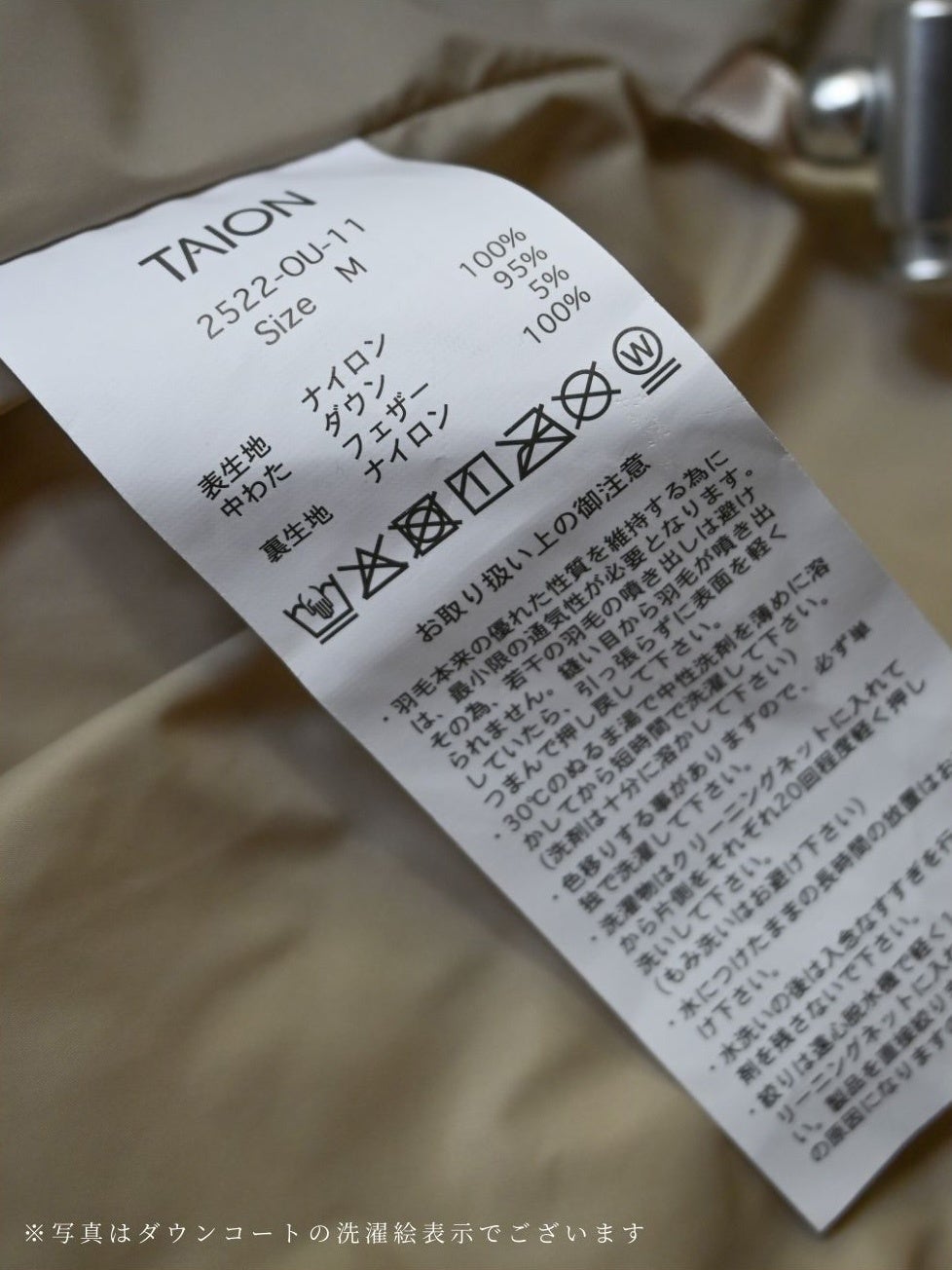 数値が高くなるにつれ保温性が増し、600~700フィルパワーがあればタウンユースで着用いただくのに最適な温かさが得られるレベルです。その中でも800フィルパワーの高品質で保温性の高いダウンをTAIONは採用しています。