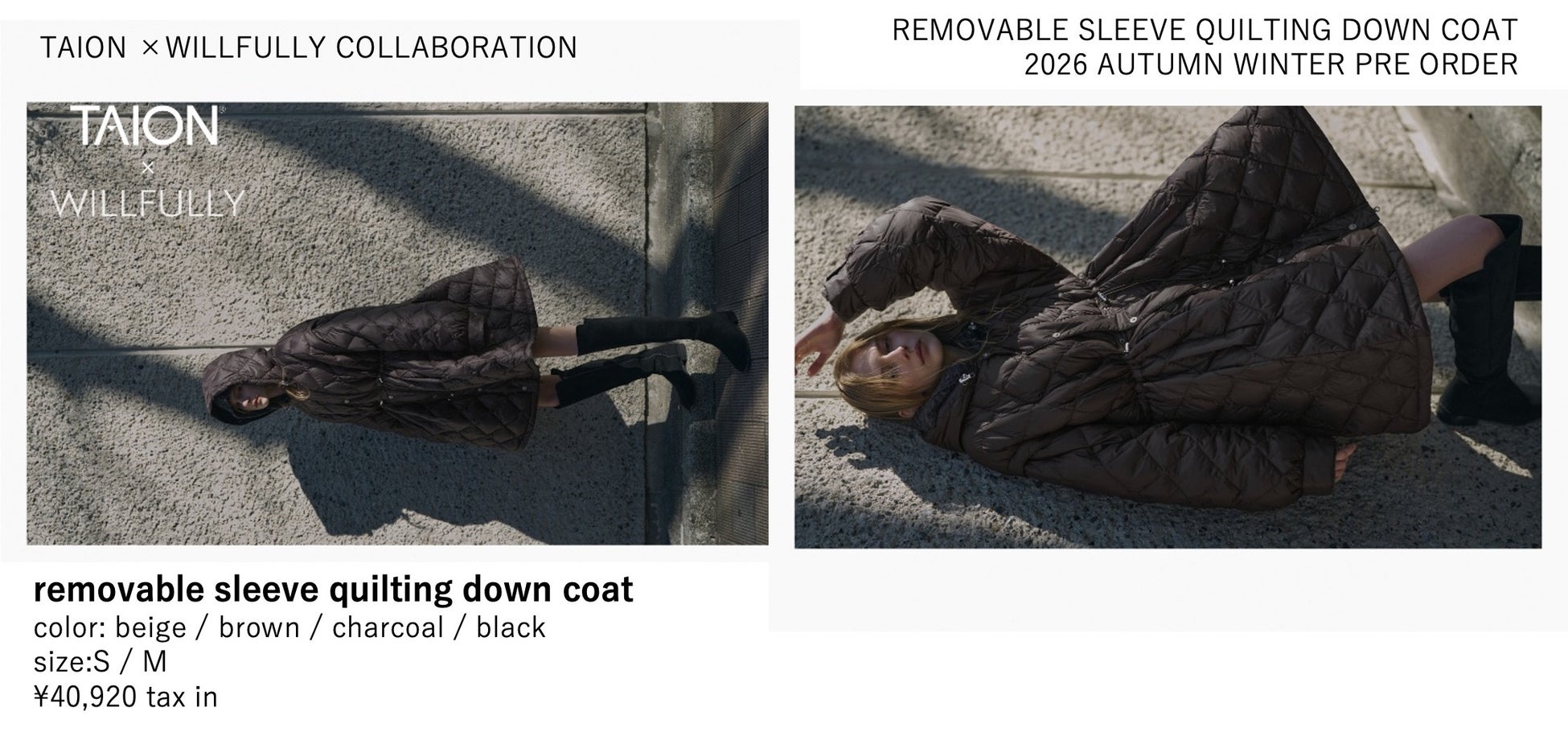 発売からわずか数分で完売。再入荷リクエストは1000件超——。2026AW TAION × WILLFULLY のマルチway キルティングコート