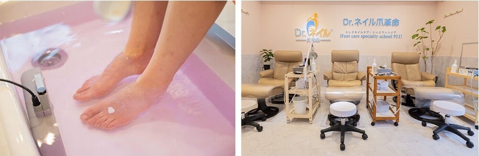 当社が展開する「ドクターネイル爪革命」はヨーロッパの高度な知識と日本の繊細な技術で独自に進化した「足と足爪の専門サロン」です。巻き爪・変形した爪(巻き爪、肥厚爪など)、肥厚爪(厚い爪)、魚の目、タコ、かかとのひび割れなどのお悩みに対して、全国各地の店舗にて、専門の知識と高度な技術を学んだスタッフと独自開発のフットケアマシンによる「痛みがなく」「即効性のある」トータルフットケアを提供しております。