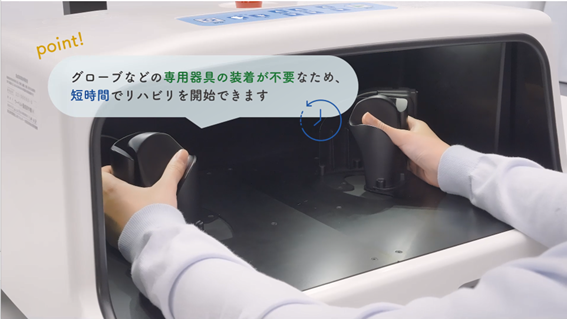ロボットハンドに手を入れるだけで”ラクラク装着”