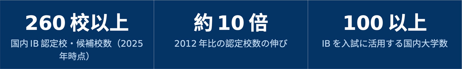 IB 教育は日本でも急速に広がっており、受験環境は大きく変化しています。IB アカデミーは IB 生・ 保護者の皆様が正確な情報をもとに準備を進められるよう、本プレスリリースにてその実態をお伝えします。