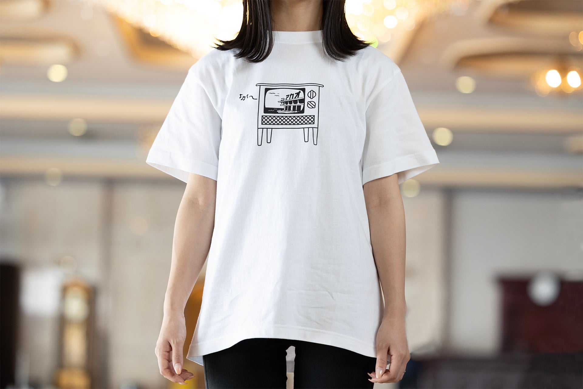 昭和生まれの自分にとっては、ブラウン管テレビはまさにノスタルジー。子供時代のあれこれを思い出し、ジーンとしてしまうアイテムです。しかし若者にとってはぷっくりした画面がレトロかわいいアイテム。このTシャツを見た人が“ジーンとする”のか、または“かわいいと思う”のか、そんな違いが出ると面白いなと思って制作しました。
