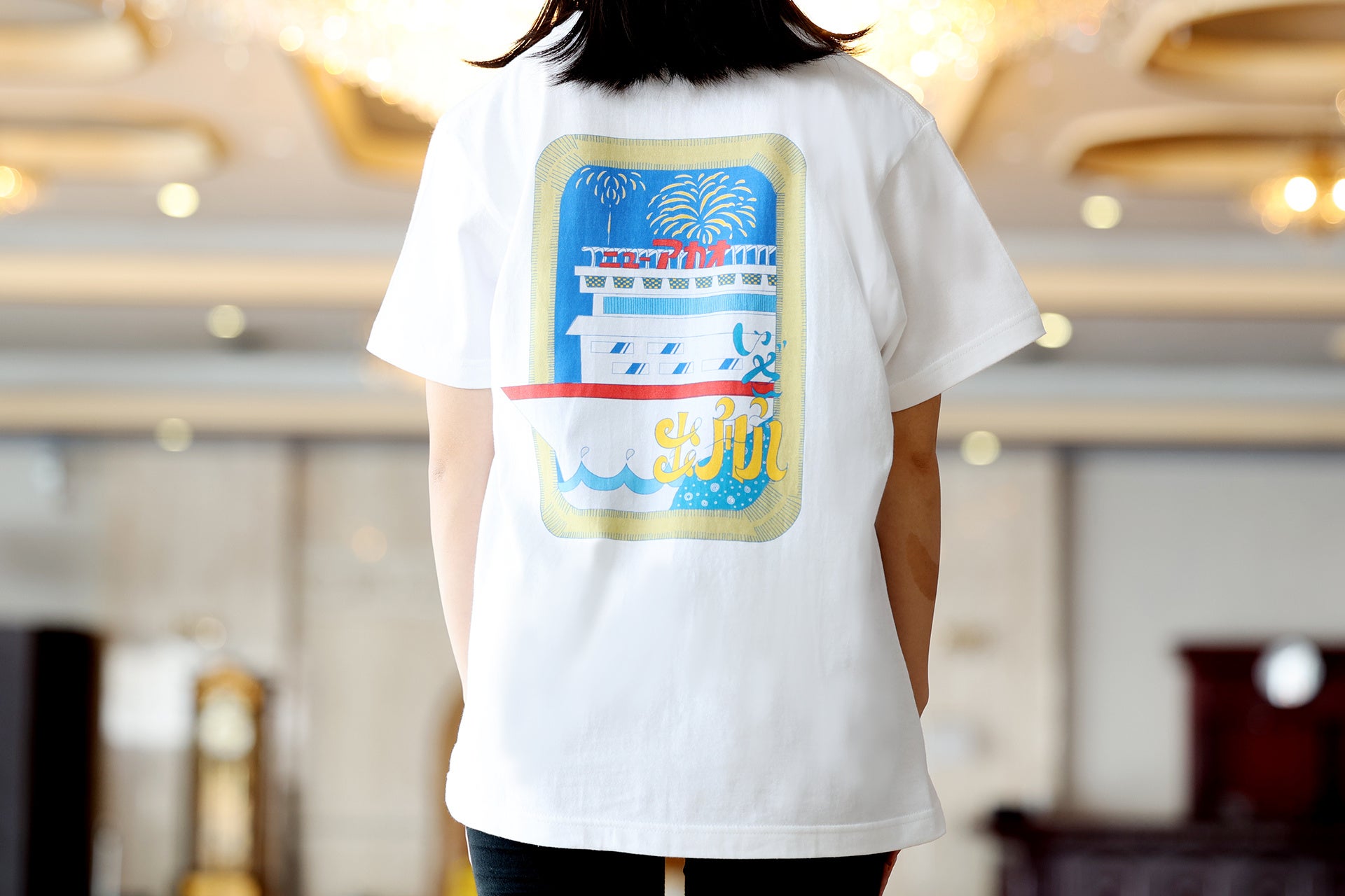 さらに、ホテルニューアカオオリジナルTシャツも販売決定。豪華客船を彷彿とさせる美しき設計思想の結晶とも言えるホテルニューアカオ。1973年の開業以来、昭和という時代の象徴として数多の旅人を迎えてきました。そして迎えた昭和100年という節目に、新たな航海へと舵を切り、時代を超えて、次なる物語が始まり、新たなる時代へと夢を乗せ、船出するという思いをイメージしたデザインです。