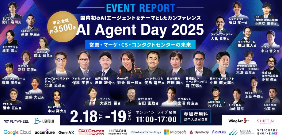 生成AI技術を活用したAIエージェントによる社会実装を推進し、顧客体験(CX)の変革を目指す一般社団法人AICX(AI Customer Experience)協会(東京都、代表理事:小栗伸、小澤健祐、以下、AICX協会)は、2025年2月18日(火)、19日(水)に国内初のAIエージェントをテーマにしたオンラインカンファレンス「AI Agent Day 2025」を開催しました。本イベントには約3,500名が申し込み、業界を代表する31名の登壇者が貴重な知見を共有し、活発な議論が交わされるなど、多くの関心を集めるカンファレンスとなりました。