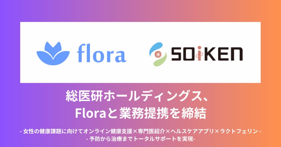株式会社総医研ホールディングス(本社:大阪府豊中市、代表取締役社長:角田 真佐夫、以下「当社」)は、女性のライフステージにおける健康課題に特化したアプリ「Wellflow(ウェルフロー)」を提供するFlora株式会社(本社:京都市左京区、代表取締役CEO:クレシェンコ アンナ、以下「Flora」)と、業務提携契約を締結いたしました。
