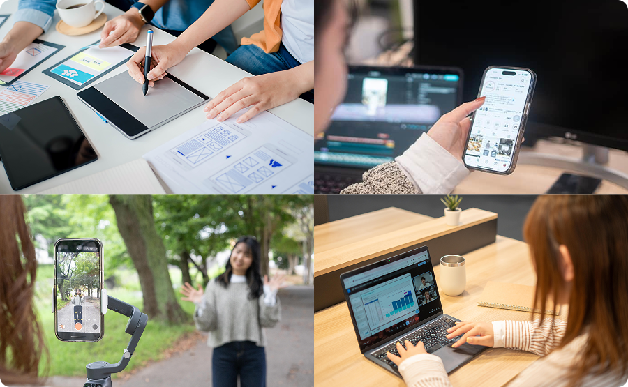 栃木県内限定のサービスだからこそ、撮影から運用までを一貫してサポートします。企画・撮影・編集・投稿といったSNS運用に必要な工程を、まとめて対応。インフルエンサーとプロチームが連携し、スムーズな運用体制を構築します。