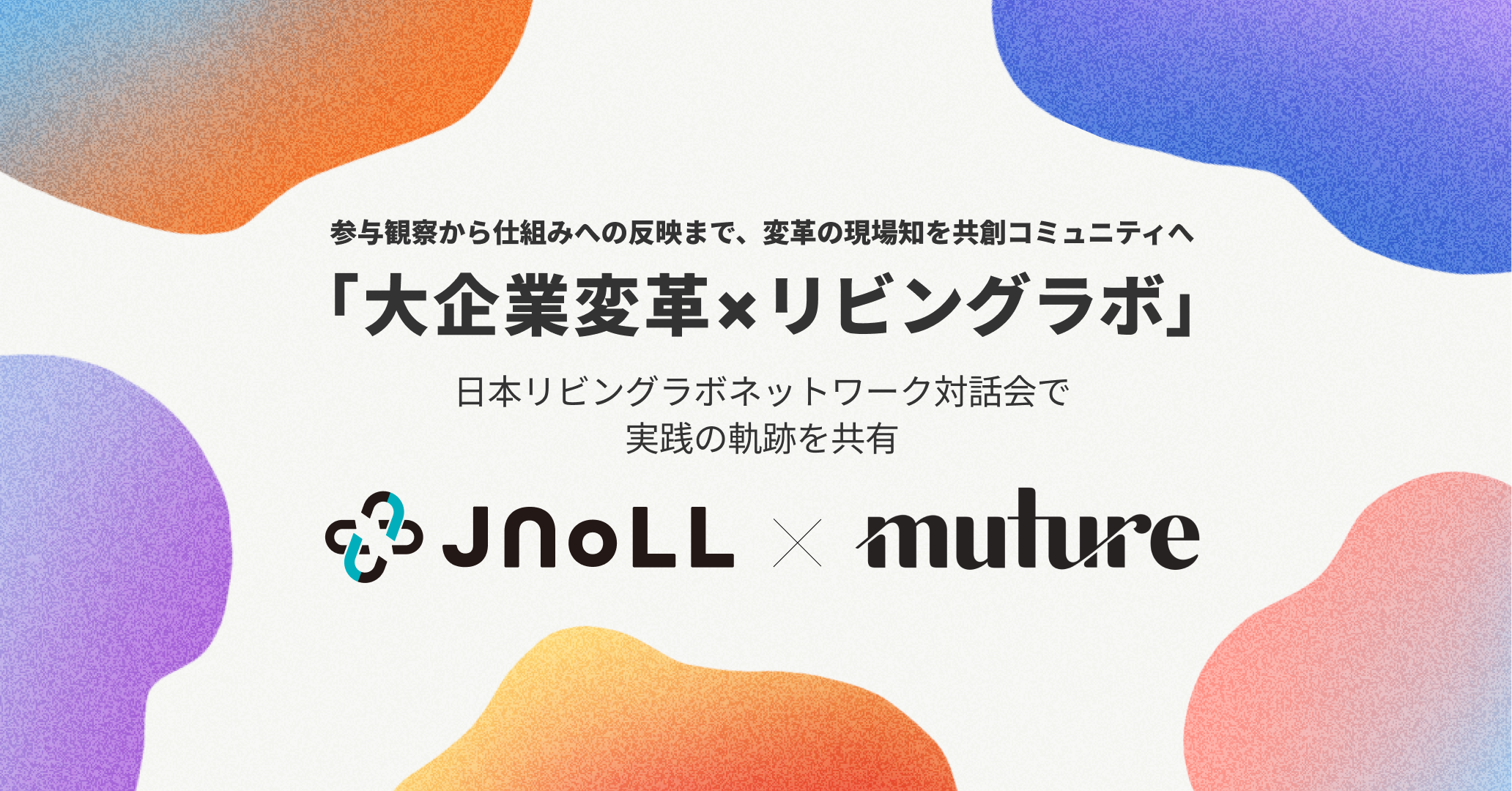 丸井グループとグッドパッチの合弁会社として企業変革を支援する株式会社Muture(本社:東京都中野区、代表取締役:莇 大介、以下「Muture」)は、2026年3月11日(水)に開催される一般社団法人日本リビングラボネットワーク(代表理事:木村篤信、以下「JNoLL」)の対話会にて、代表取締役の莇 大介が「大企業変革×リビングラボ」をテーマに話題提供を行います。デザイン会社との合弁という立場から深く入り込み、丸井グループの企業変革に取り組んできた実践の軌跡を、リビングラボおよび共創活動の実践者との対話の場で共有します。