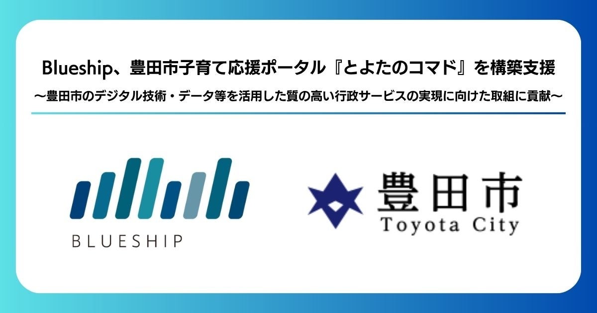 株式会社 Blueship(本社:東京都渋谷区、代表執行役:杉﨑恵悟、以下当社)は、豊田市の子育て世帯などを対象としたポータルサイト「豊田市子育て応援ポータル『とよたのコマド』」を構築支援し、令和7年7月7日にサイトが公開されることをお知らせいたします。