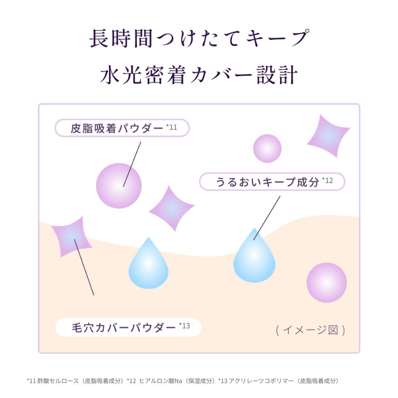 毛穴カバー、崩れ・テカリ防止「水光密着カバー設計」
