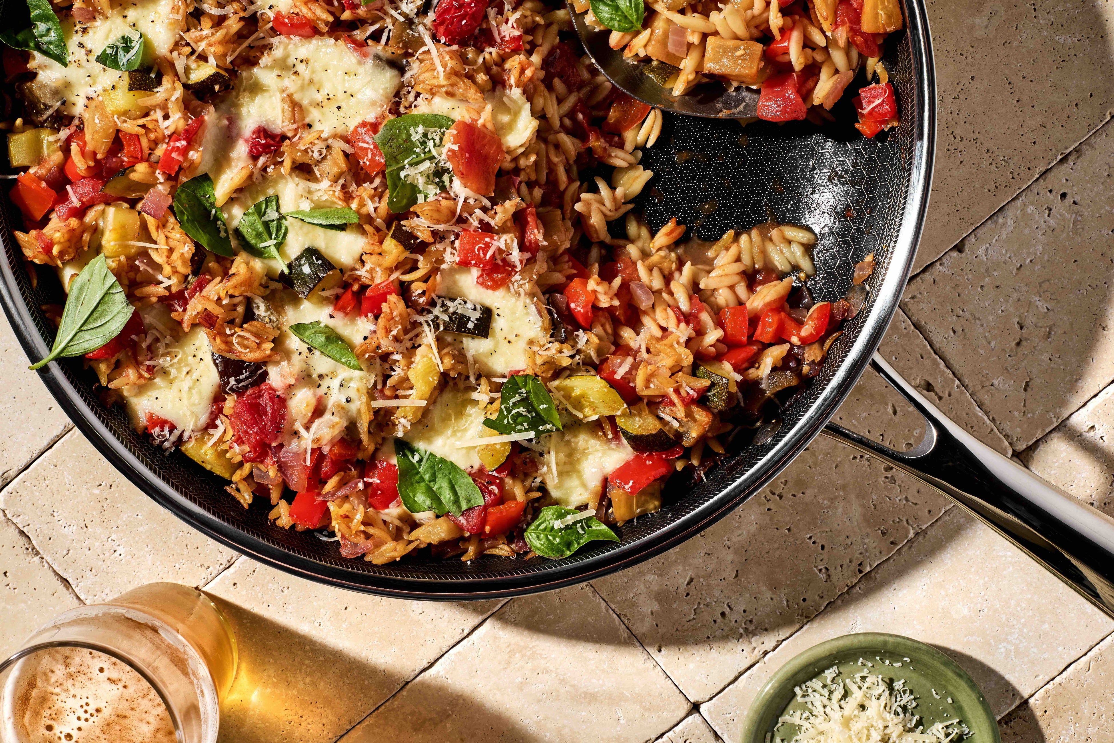 HexClad独自のハイブリッド構造により、優れた熱伝導で食材に均一に火が通り、美しい焼き目をつけながらもくっつきにくいノンスティック性能を実現。
