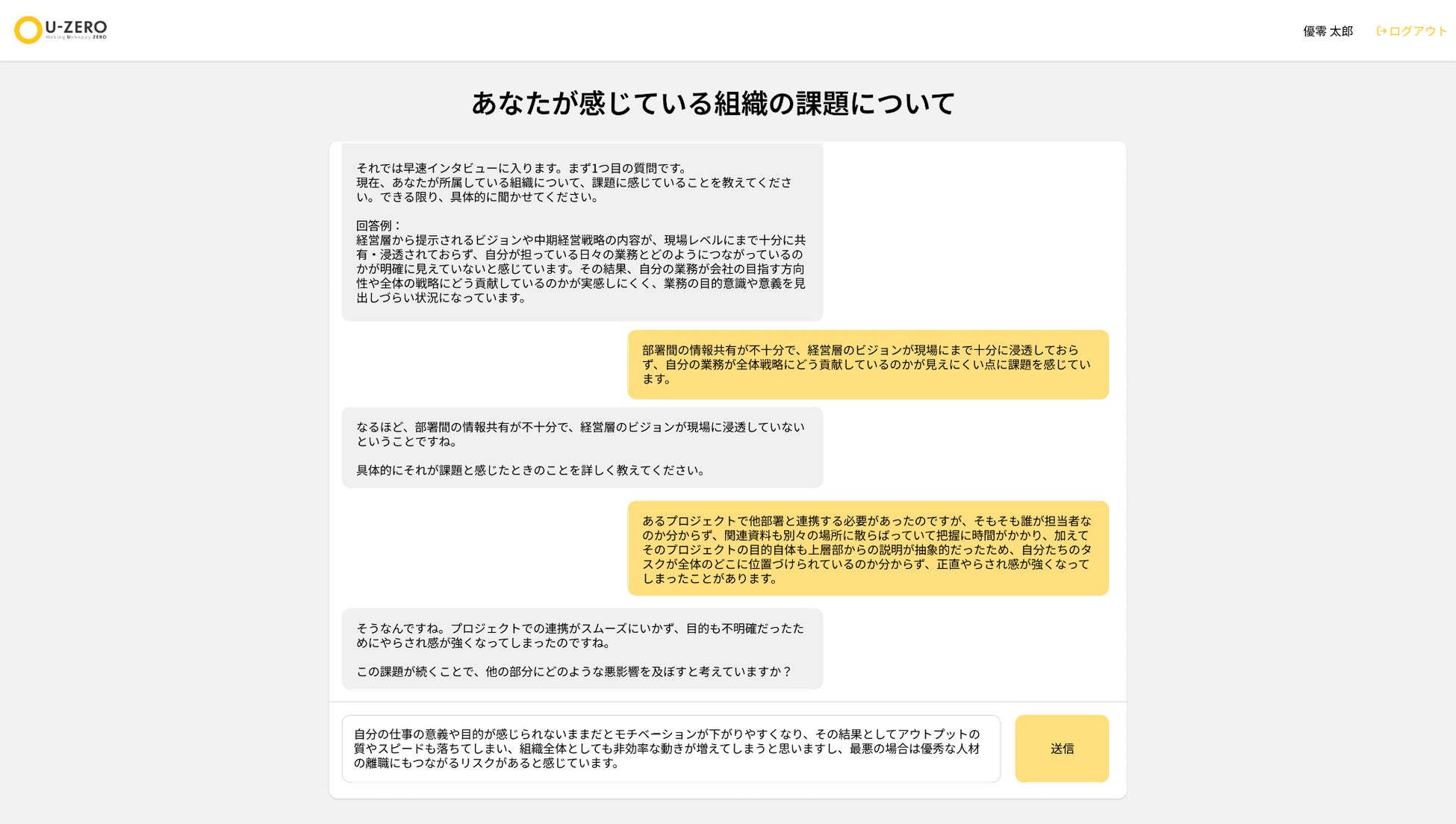 「U-ZERO Engagement Suiteは、従業員の声をしっかりと反映し、組織全体のエンゲージメントを高めるための革新的なツールです。私自身の経験をもとに、企業が抱える課題に対してAIを駆使した具体的な解決策を提供できることを非常に嬉しく思っています。今後、さらに進化した機能で企業の成長を支援し、従業員一人ひとりが活躍できる環境作りに貢献します。」