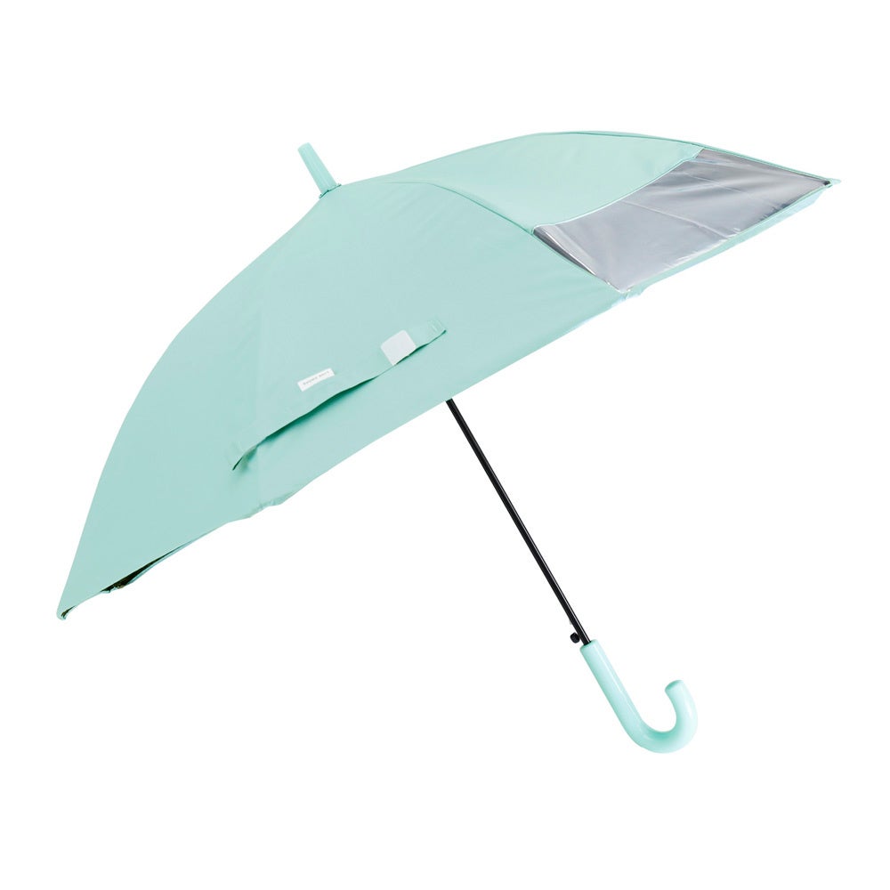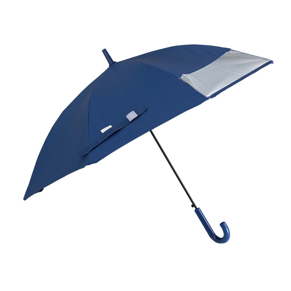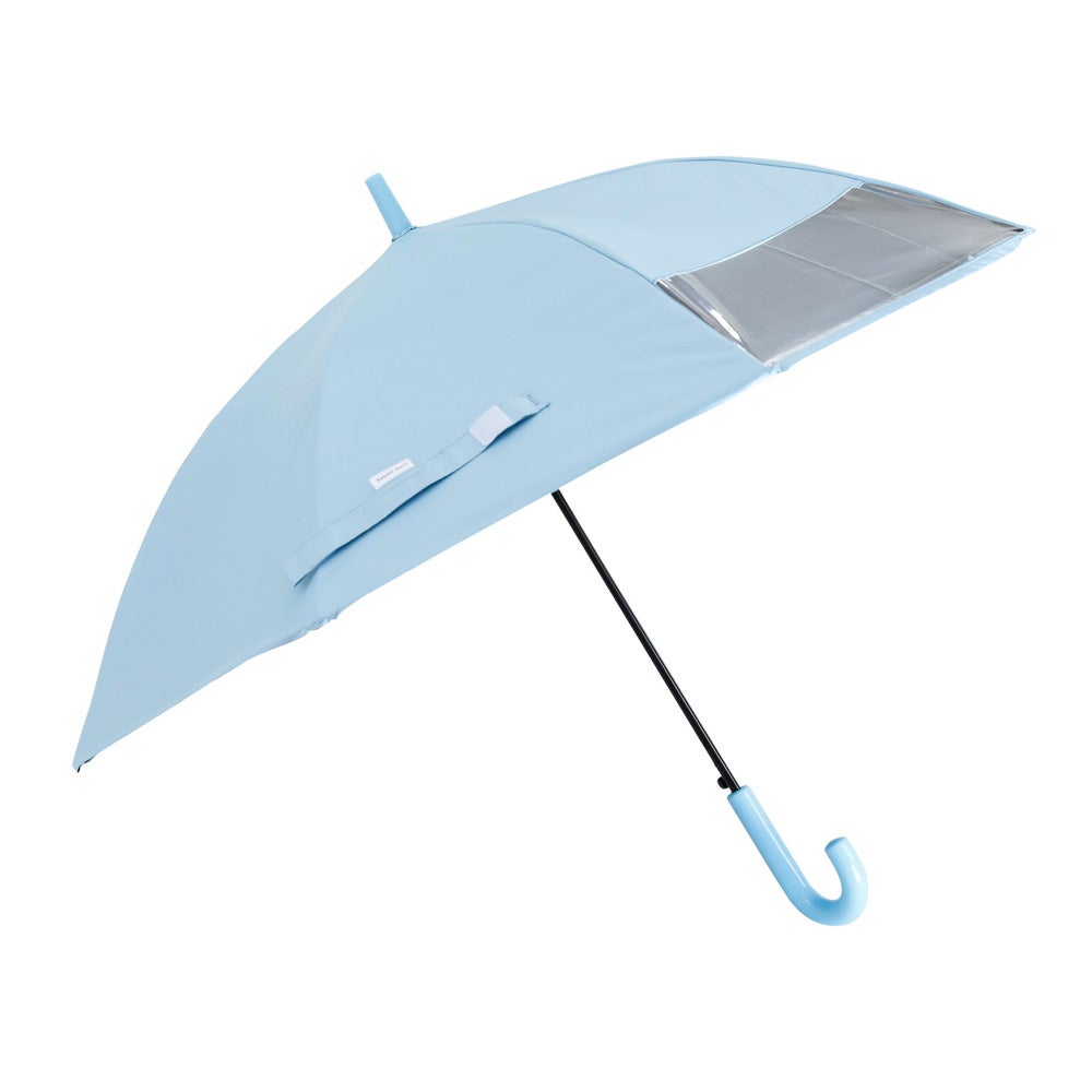 長傘には透明窓を一部設けており、傘をさした時にも視界を確保しやすくしています。また、反射テープを1箇所裾部分に取り付けており、暗い場所で車や自転車のライトの光を反射し、存在をアピールします。(透明窓は長傘のみ)