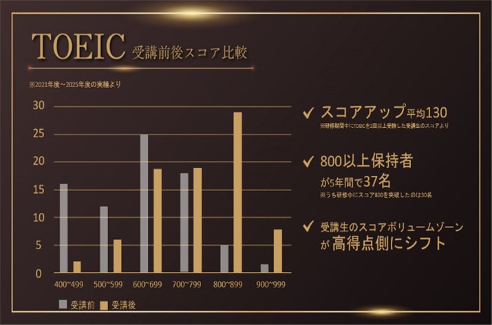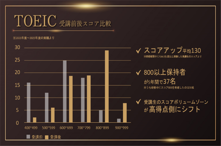 • TOEIC平均:+130点