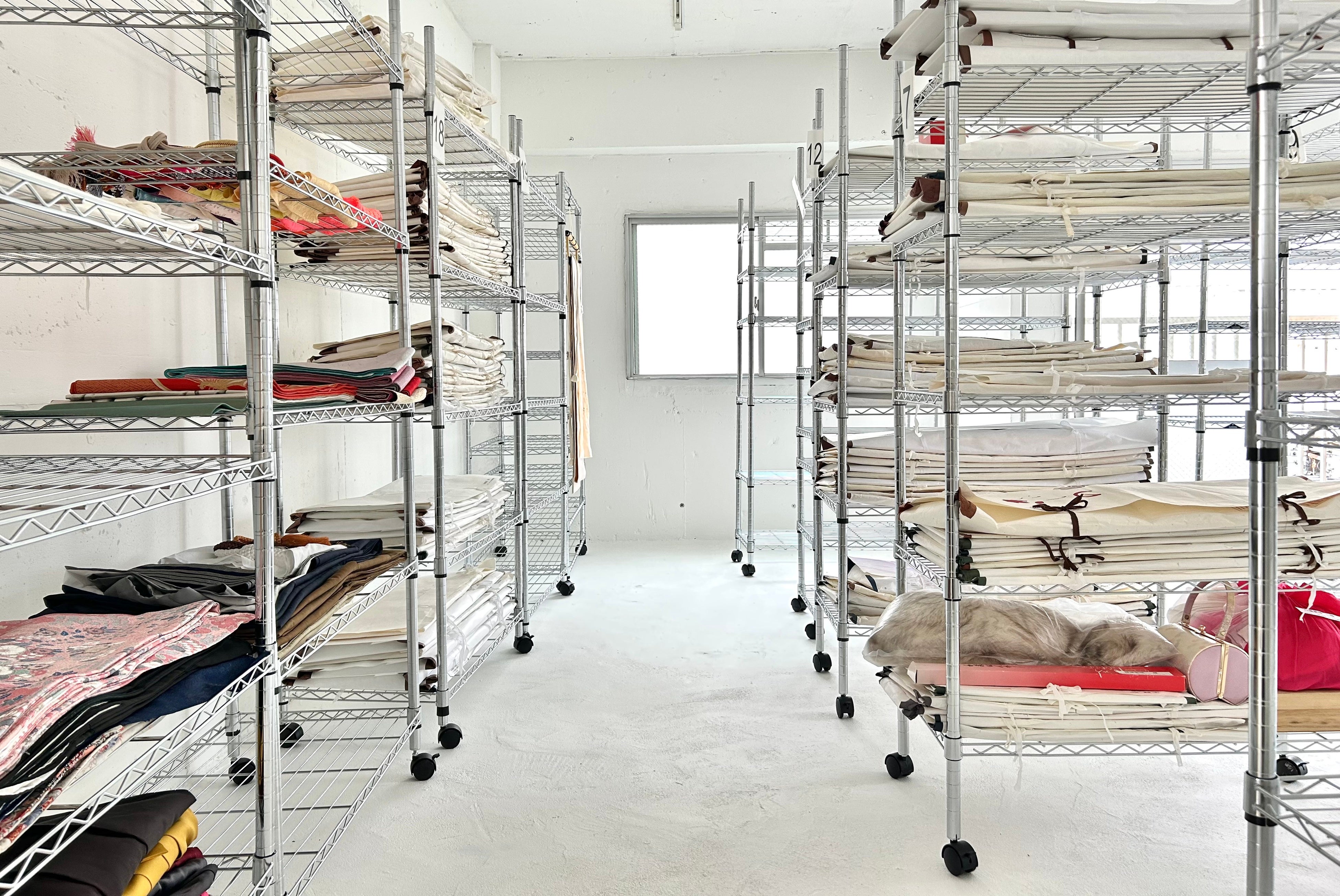 KIMONO CLOSETでは、お預かりした着物を暗い段ボールの中に放置することはありません。1点1点箱から出し、呼吸をさせるように管理します。 お客様がその着物を手にした時の喜び、ご家族から受け継いだ時の想い。そんな目に見えない物語に寄り添いながら、我が子を慈しむように、最良の状態で未来へと繋ぐ「お世話」を徹底いたします。