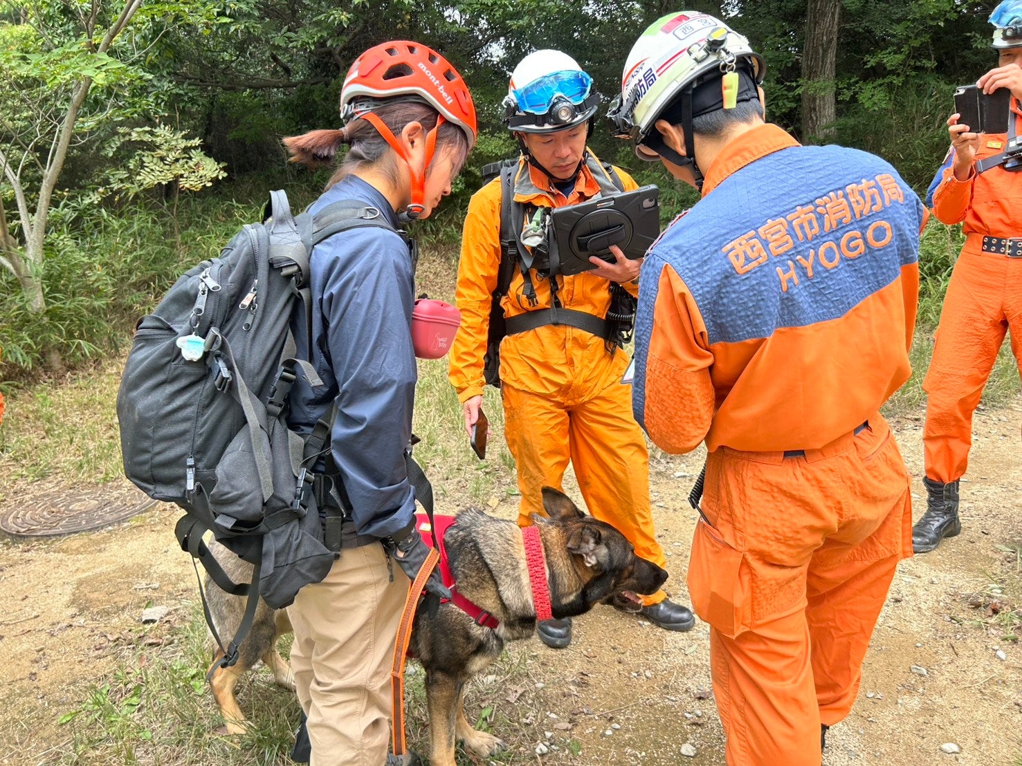 訓練中は、救助犬の様子を気遣ってくださり、救助犬について熱心に質問してくださる場面も多く見られました。