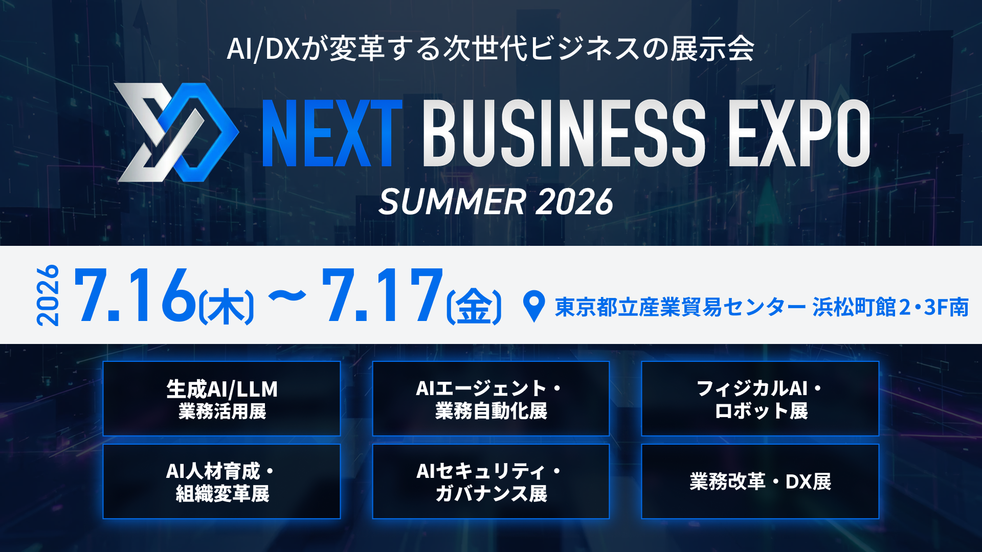 NEXT BUSINESS EXPO実行委員会は「NEXT BUSINESS EXPO SUMMER 2026」を2026年7月16日(木)17日(金)に東京都立産業貿易センター 浜松町館2階・3階南で開催します。