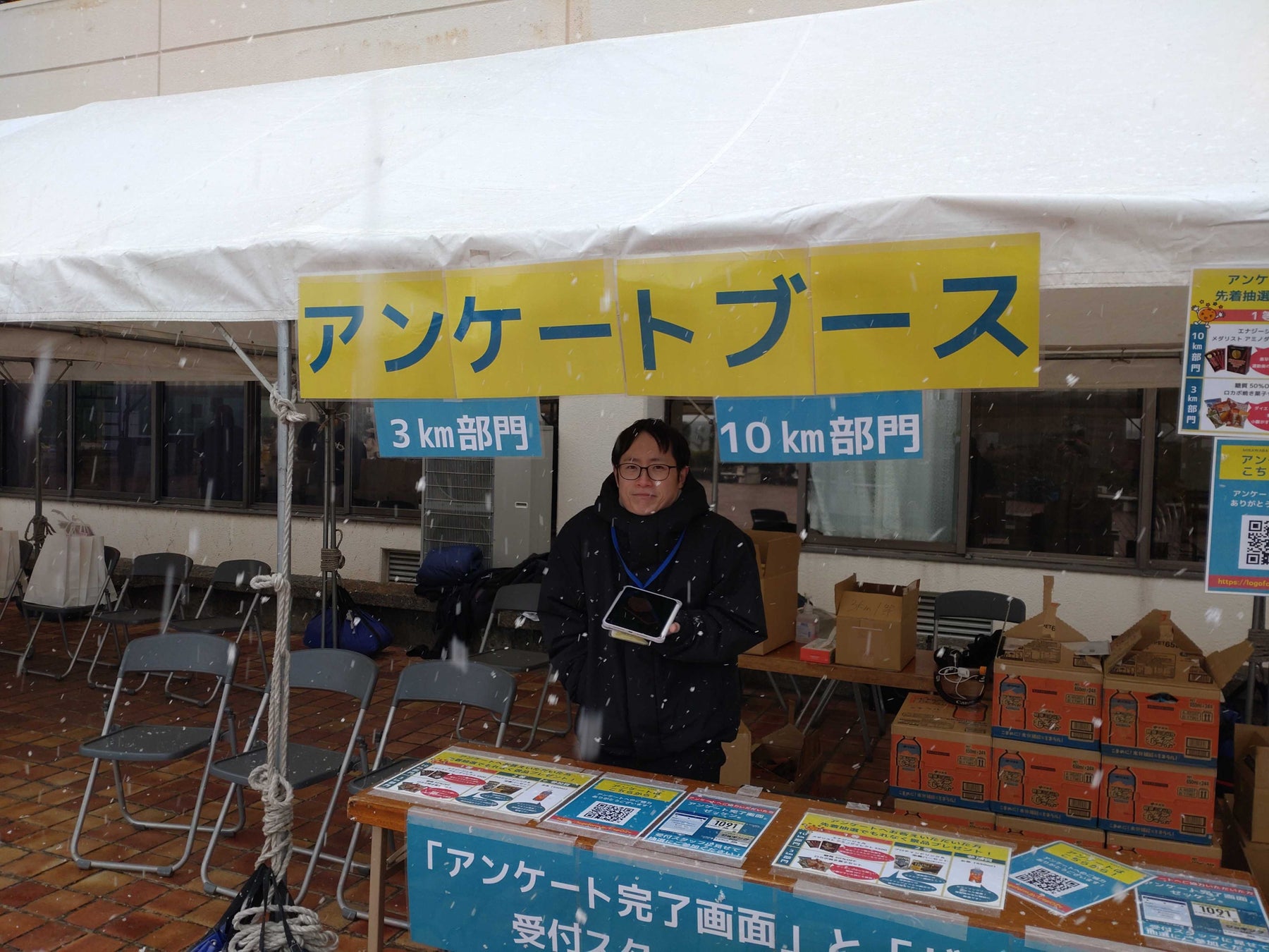 ゴール地点には、完走タイムを記入できる「タイムボード」を設置。参加者が完走記念を写真に残せるフォトスポットとして賑わいました。また、大会アンケートと連動したアプリ抽選企画を実施。ハズレなしのガラガラ抽選により、楽しみながら大会に参加できる仕組みを構築しました。さらに、走行案内用プラカードの制作・提供を行い、安全で円滑な大会運営にも協力しました。