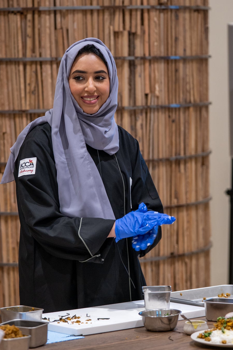 第1週目となる5月26日(月)〜6月1日(日)には、ICCAアブダビ校を卒業した初のエミラティ女性シェフ、マイサ・アル・シャムシ(Chef Maitha Al Shamsi)が登場。ザイード空港にて、UAEを代表するケータリング企業キャピタル・ケータリング・プラス(Capital Catering+)のシェフとして活躍中の彼女が、UAEの食文化の魅力を語りながら、目の前で本場の料理を仕上げます。調理後には、ご来場者にご試食いただける貴重な機会もございます。
