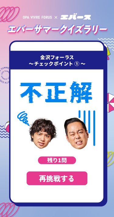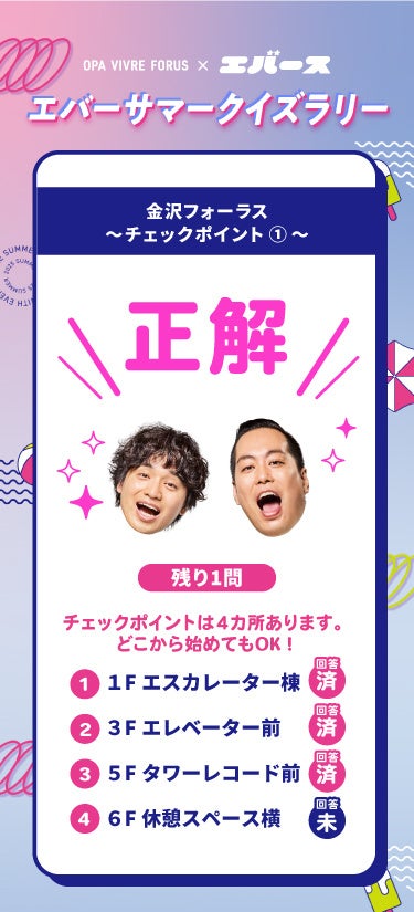 今年の夏、全国のオーパ・ビブレ・フォーラスでは、M-1グランプリ2024ファイナリストとして注目を集める人気お笑いコンビ“エバース”とのコラボレーション企画を展開します。