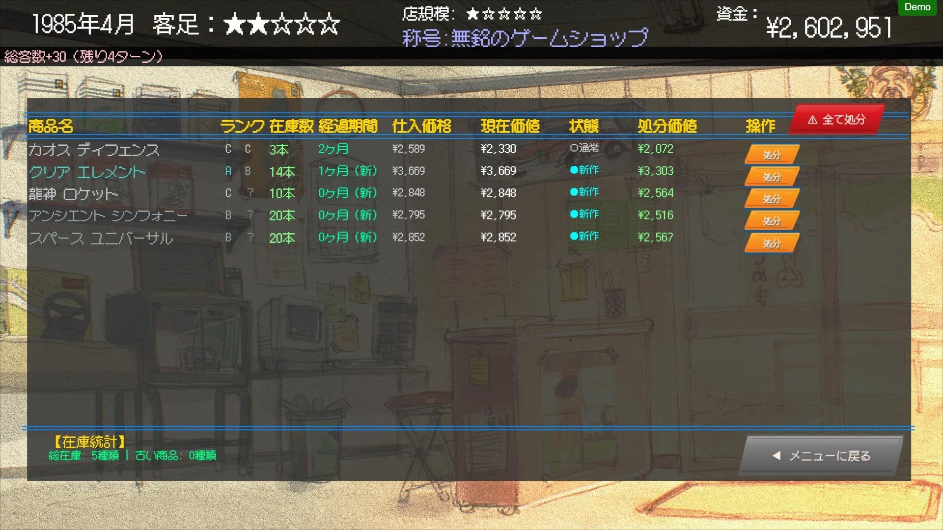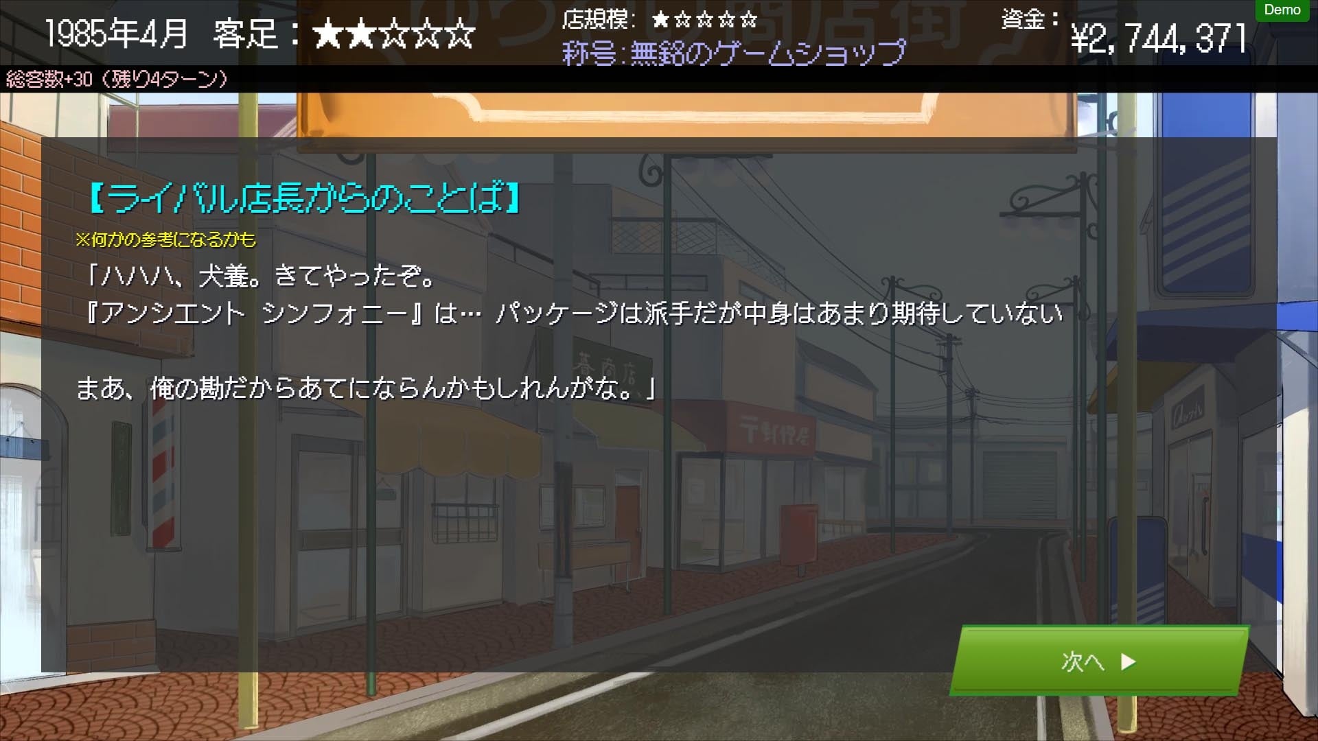 時は1985年。今日からあなたはゲームショップの経営者です。当時を知る世代には懐かしく、知らない世代には新鮮な、シビアでリアルな経営体験があなたを待ち受けています。