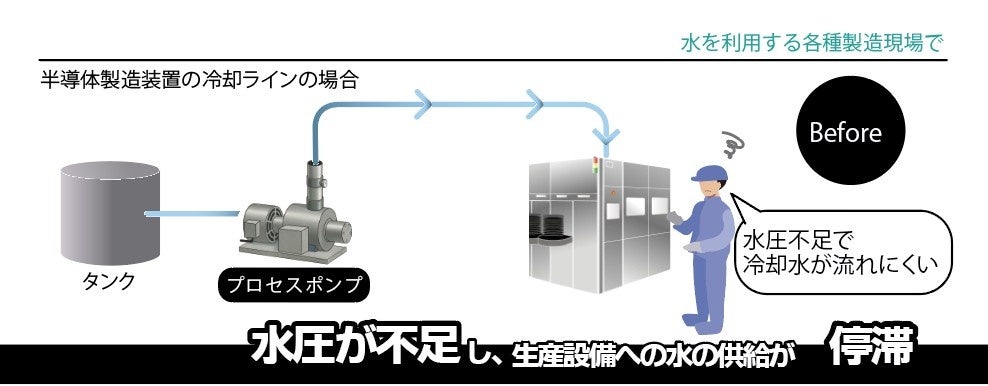 弊社の既存昇圧ポンプは、主に半導体や液晶製造装置の冷却ラインにおいて使用されていましたが、グレードアップした本製品は、さらにターゲットの範囲を拡大し、各種製造業、医療、化学、エネルギー、建築、インフラ業界などへと展開してまいります。