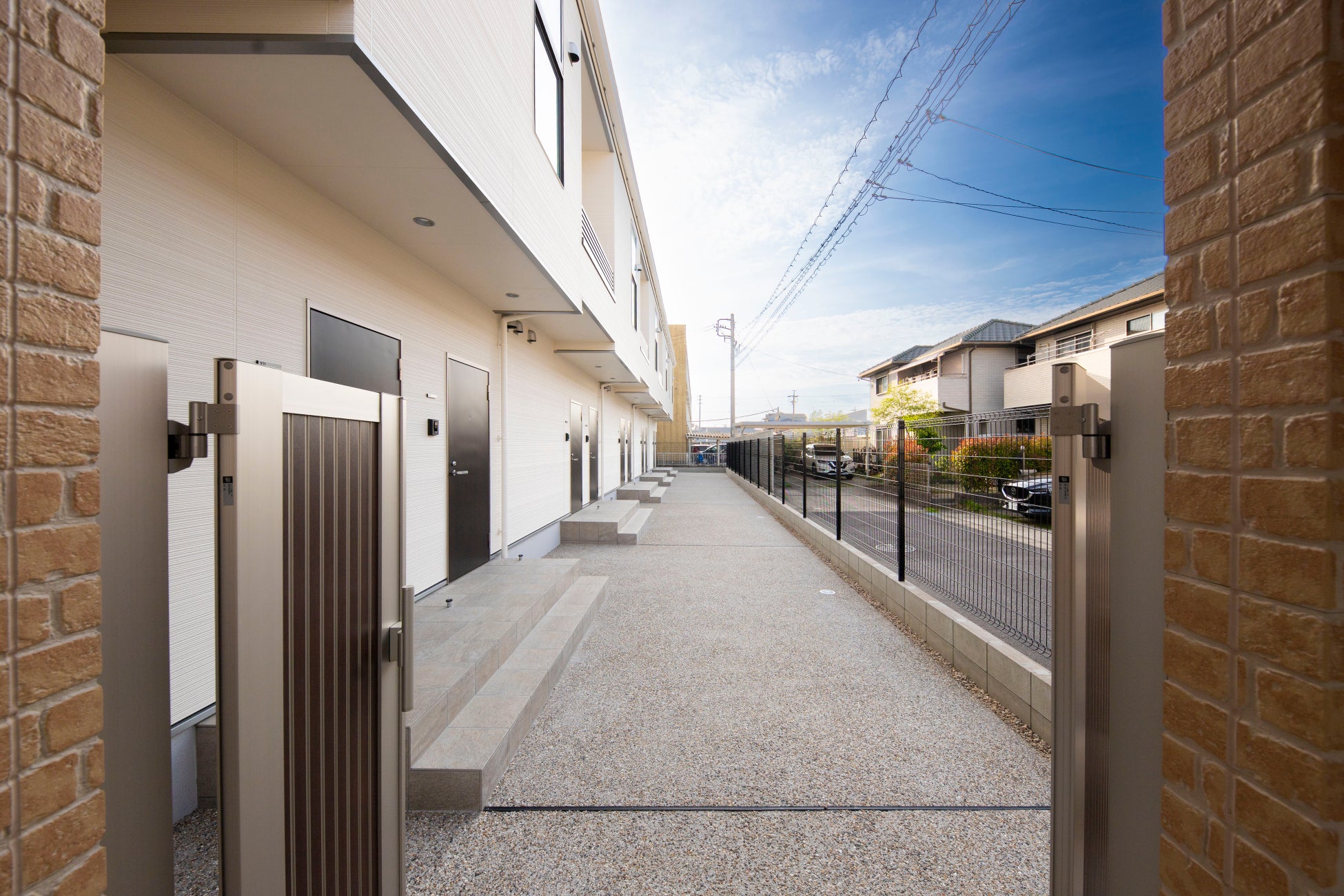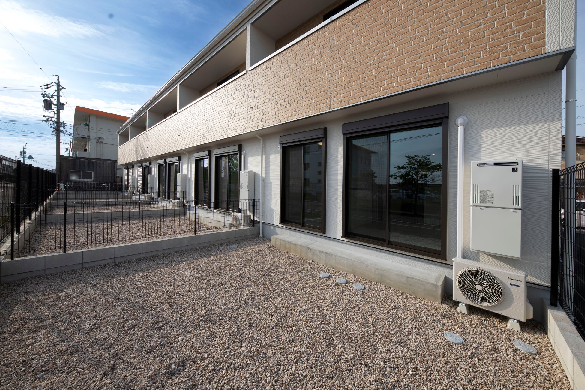 無駄を削ぎ落とし無機質な重層長屋が多い中、入居者目線を徹底的に落とし込んだ物件になります。またオーナー様が瓦職人と言う事もあり、屋根には維持コストがかかりにくい洋瓦を採用し、外壁も雰囲気を合わせたレンガ調のサイディングを使用しています。
