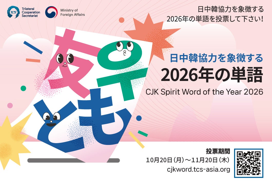 2025年10月20日、日中韓三国協力事務局(TCS)は、韓国外交部との共催により、「日中韓協力を象徴する2026年の単語」オンライン投票キャンペーンを開始しました。本キャンペーンは、日中韓三国市民の相互理解と文化的親近感を深めることを目的に、日中韓協力への期待を込めて「日中韓協力を象徴する単語」(漢字語)を選定する毎年恒例の取り組みです。