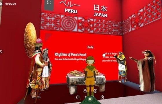 さらに、ペルーのバーチャルパビリオン(メタバース)では、「インティ・ライミ」の再現が行われており、ペルー・日本リンクゾーン内において、インカとコヤの姿を見ることができます。このコンテンツは世界中の誰でも接続して閲覧でき、「インティ・ライミ」および「サン・フアン祭」に関する歴史や影響を解説する映像資料にもアクセス可能です。アプリのダウンロードはこちらから行えます。