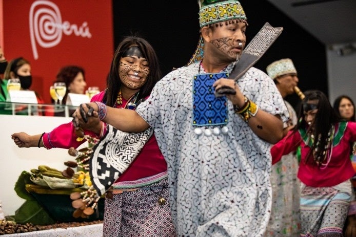 館内では、報道関係者および来賓向けに、インティ・ライミとサン・フアン祭の映像上映や、レタブロ(祭壇画)のフォトブース体験、「ラマスのカーニバルダンス」の披露、アマゾン料理の代表である「ファネ」や、アンデスとアマゾンをテーマにしたフィンガーフード、ペルー産カクテルの提供など、多面的に文化を体感できる構成となりました。