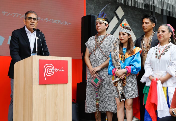 ペルー副政府代表のフェルナンド・アルバレダは、「『インティ・ライミ』は太陽神への感謝と収穫を祝うアンデスの祭り、『サン・フアン祭』は命と喜びを称えるアマゾンの祝祭であり、ともに6月24日に行われる国を代表する伝統行事です。この特別な機会に、日本の皆さまに、このペルーを代表する二つの祝祭をご紹介できることを大変嬉しく思います」と冒頭の挨拶を述べました。